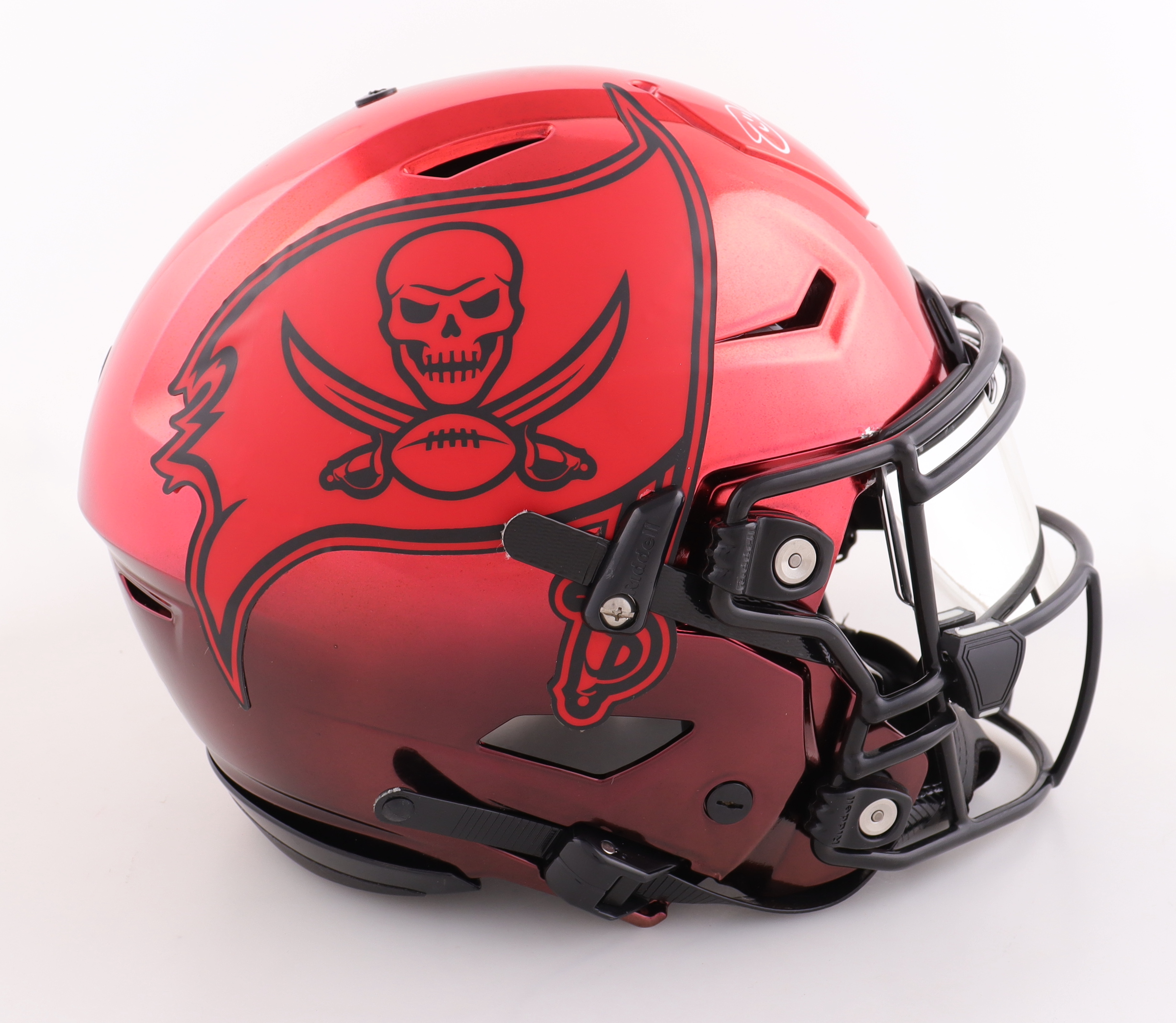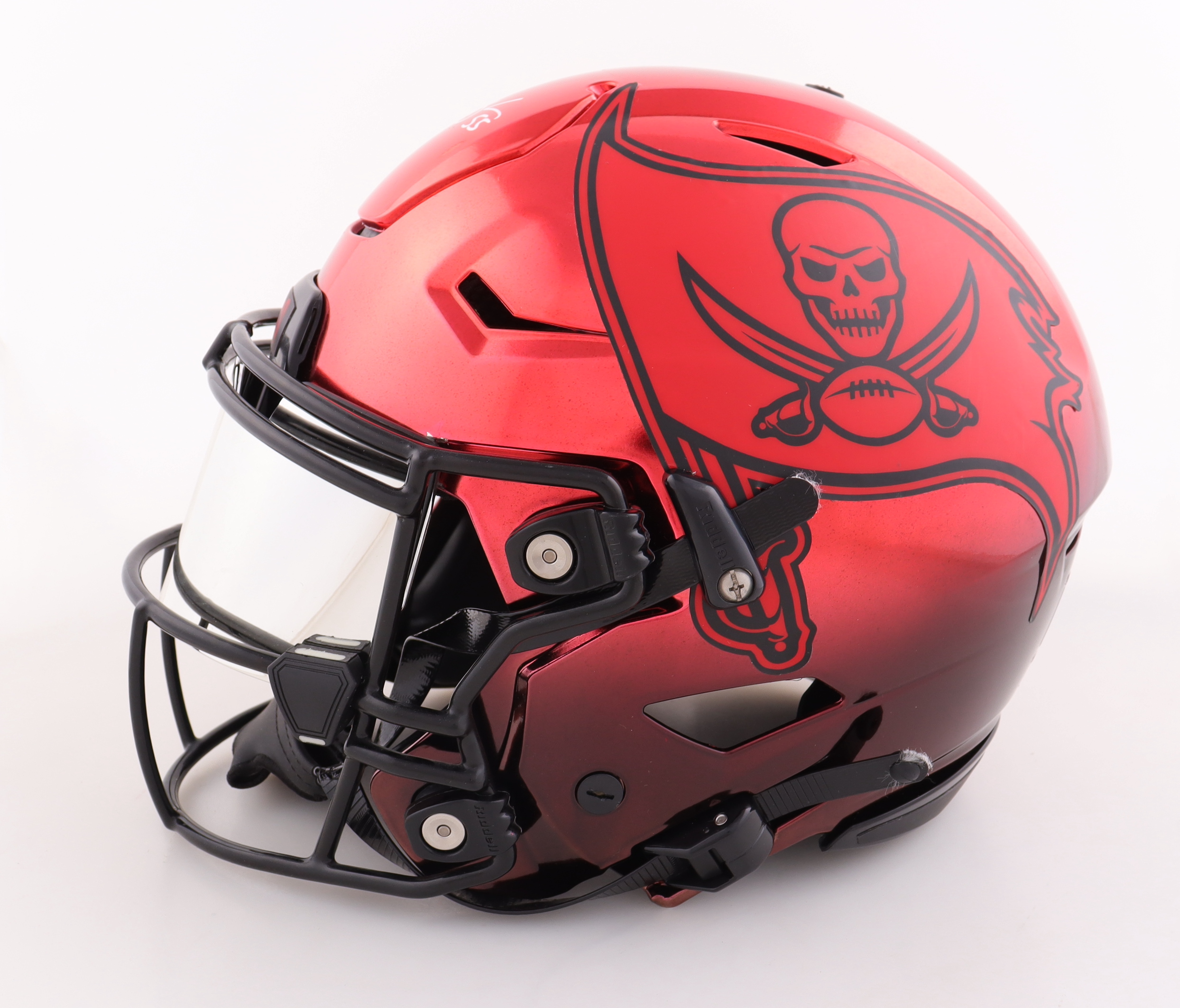 Riddell Tampa Bay Buccaneers Full-Size Authentic On-Field Chrome SpeedFlex Helmet with custom visor. Hand-signed by Derrick Brooks (HOF).