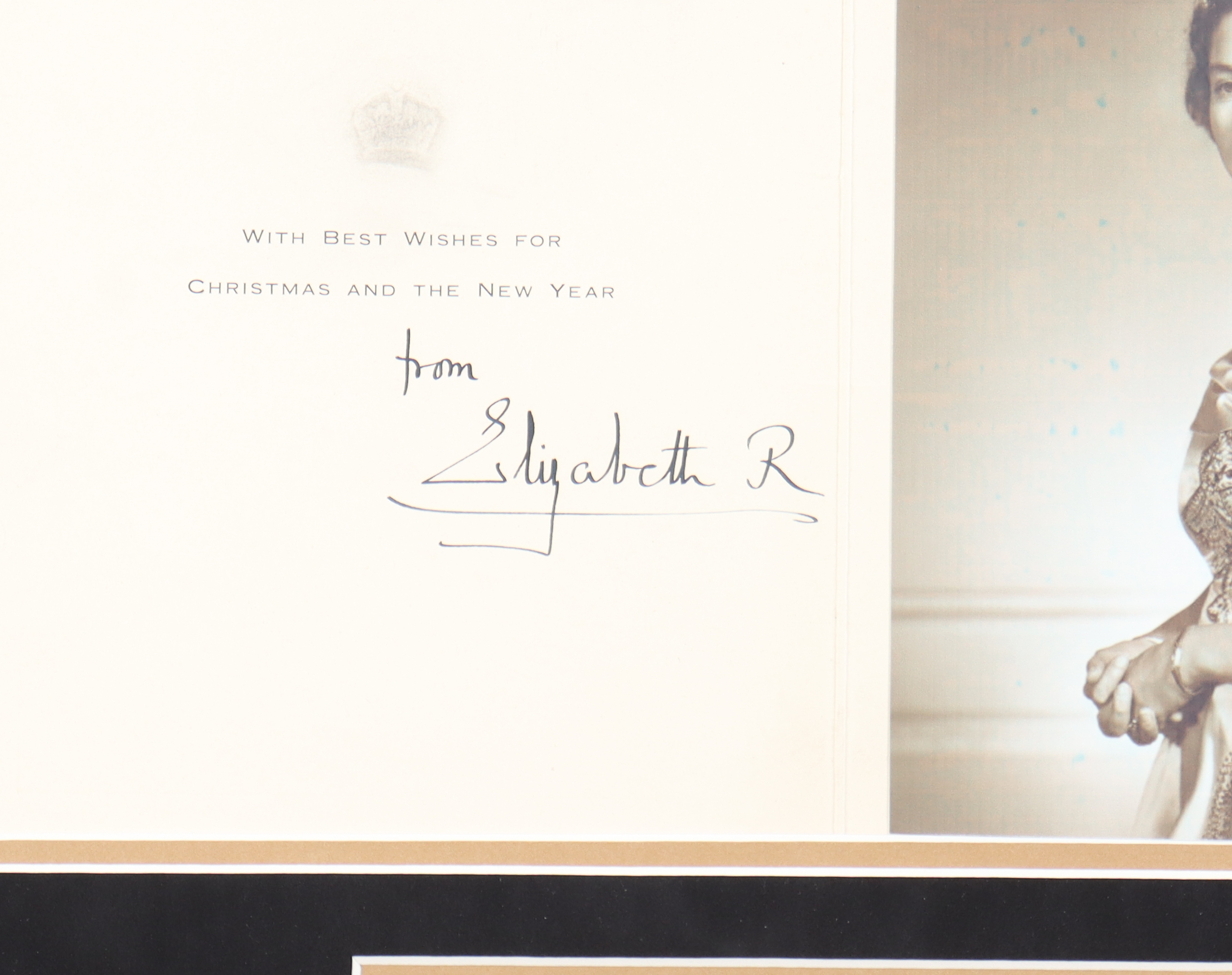 Queen Elizabeth II Signed Custom Framed Vintage Holiday Card Display Inscribed "From" (PSA)