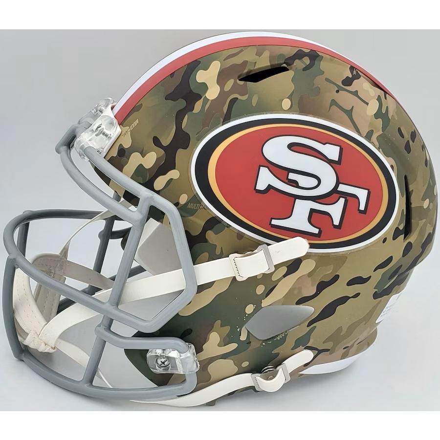 Riddell San Francisco 49ers Full-Size Camo Alternate Speed replica helmet. Please note, this item is unsigned.
