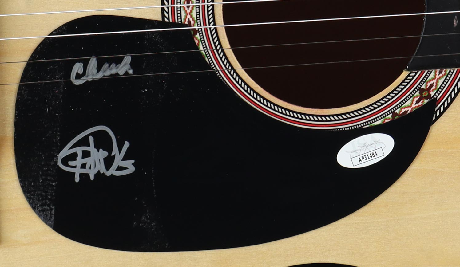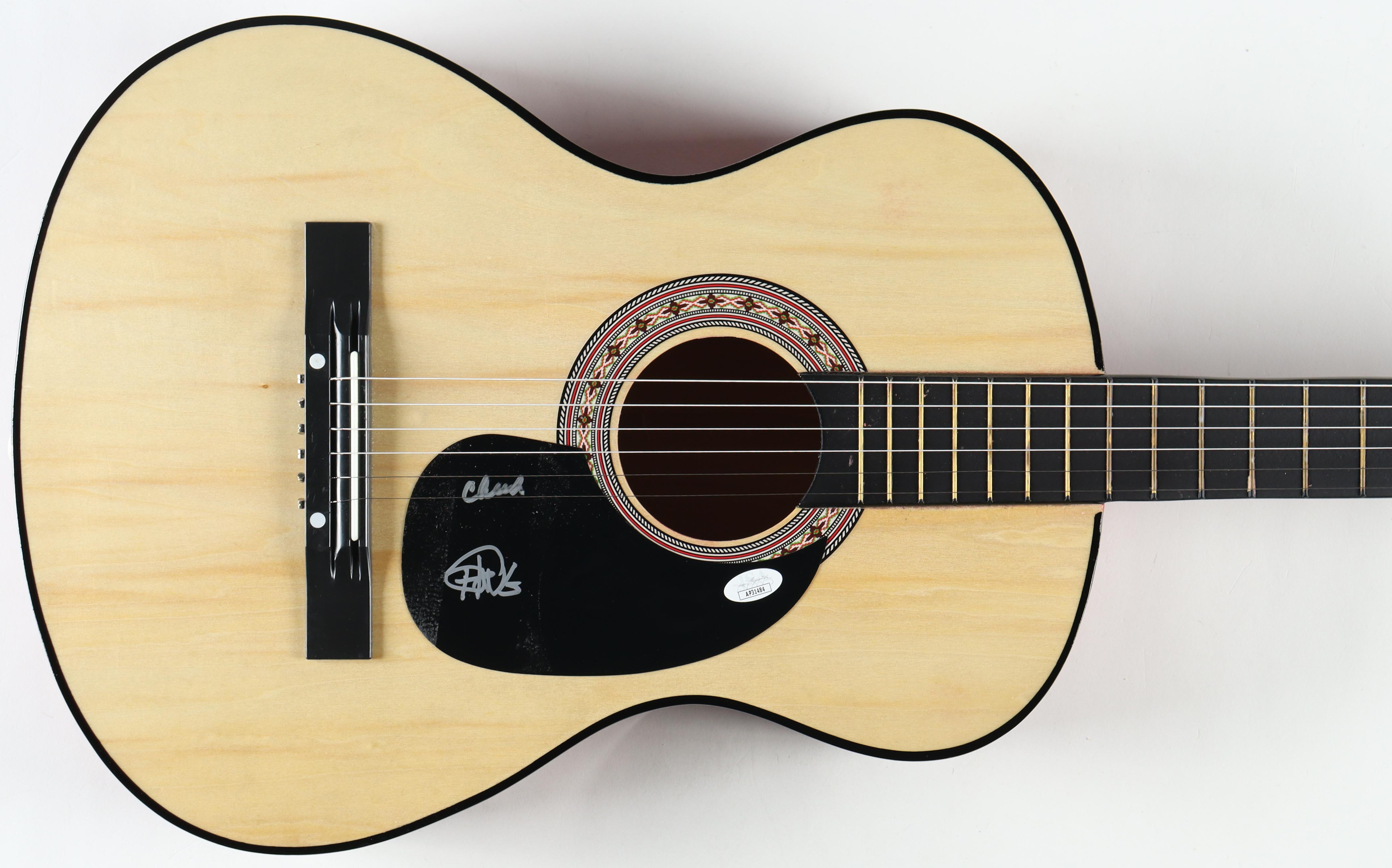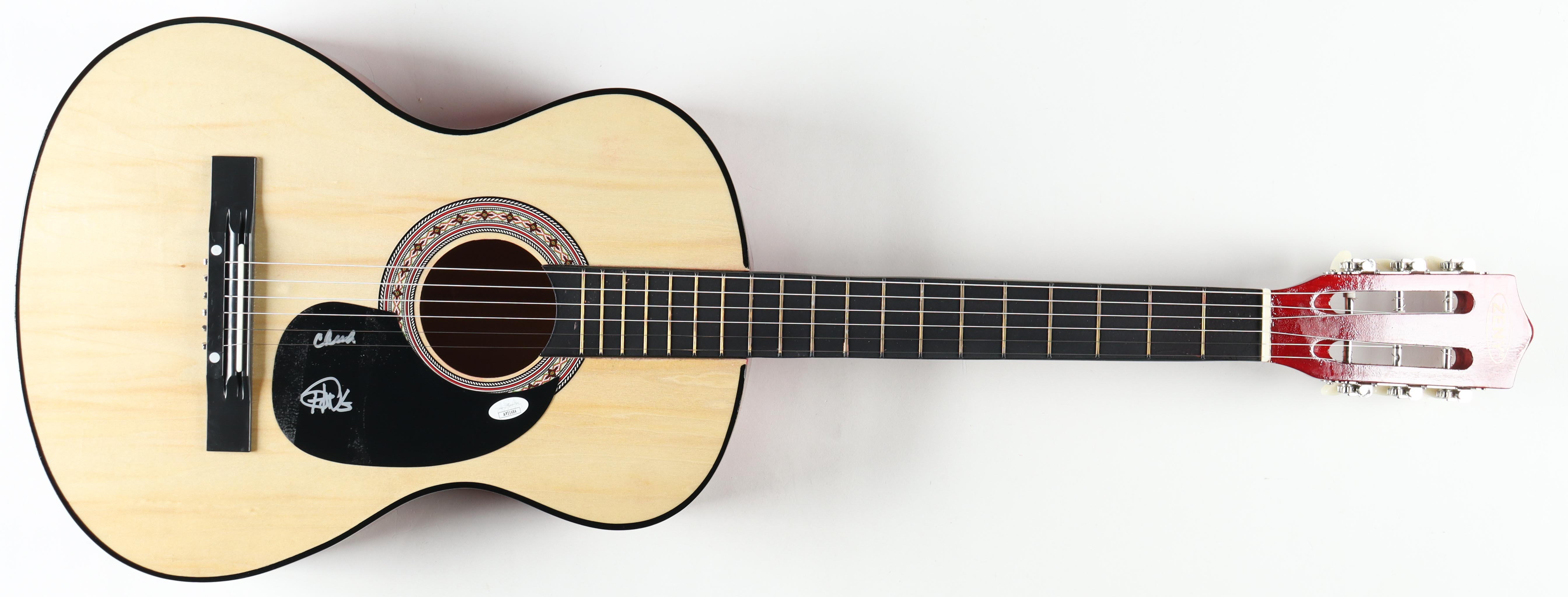 Zeny Acoustic Guitar measures approximately 38" in length and has been hand-signed on the pick-guard by Cheech Marin and Tommy Chong. Please note, there is scuffing on the pick-guard.