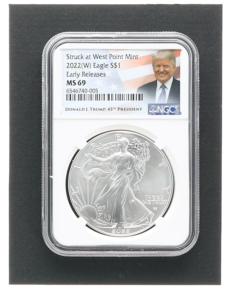 2022 American Silver Eagle - Early Releases - Struck at West Point - Trump Label (NGC MS69)