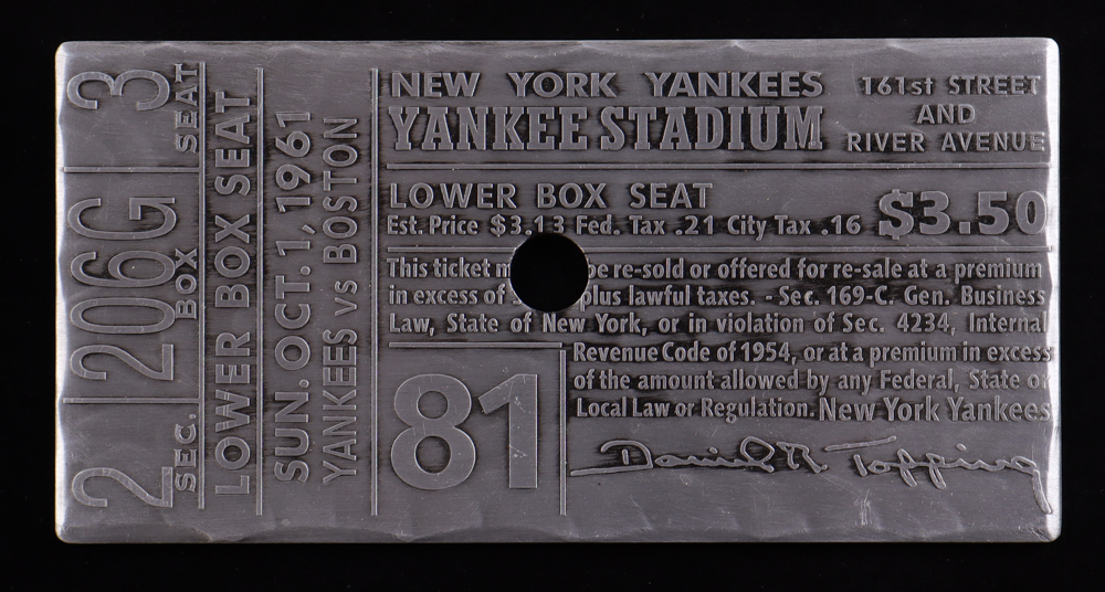 Roger Maris 61st Home Run Breaking Babe Ruth Record Ticket