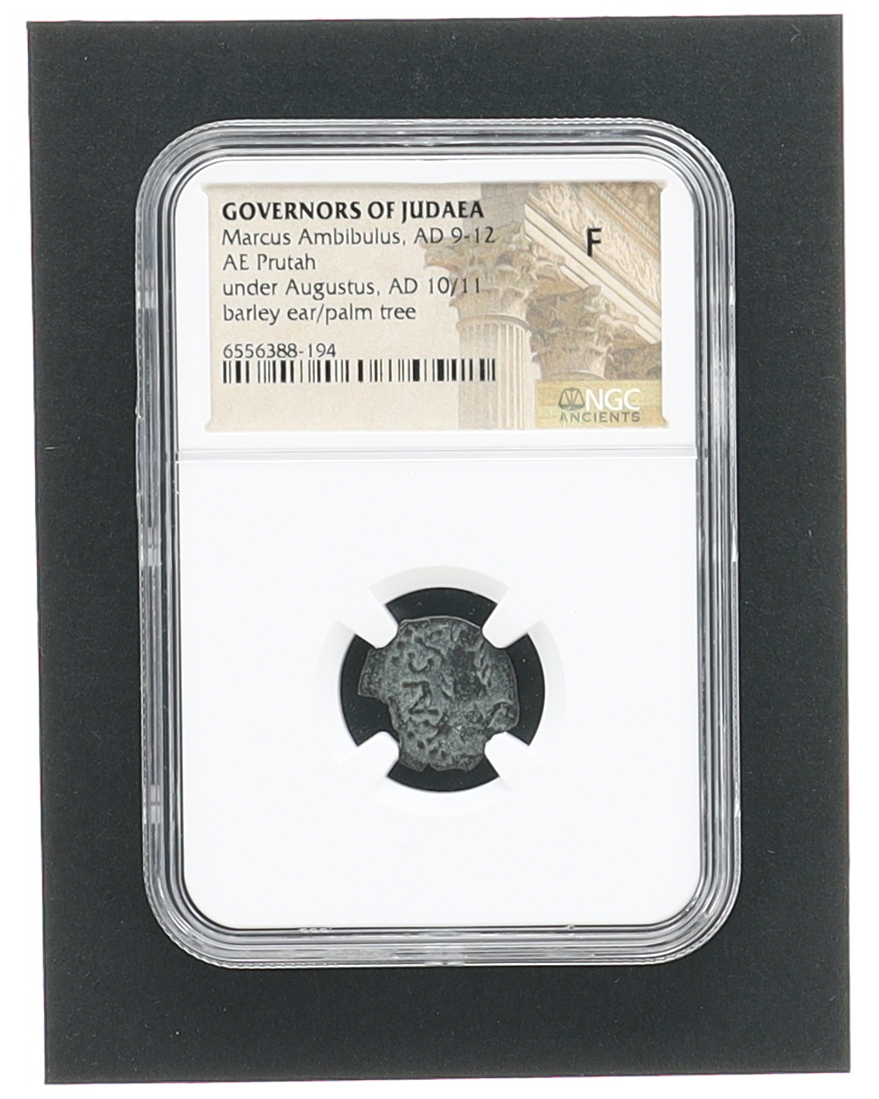 Governors of Judaea - Marcus Ambibulus, AD 9-12, AE Purtah, under Agustus, AD 10/11, barley ear/palm, tree (NGC F)
