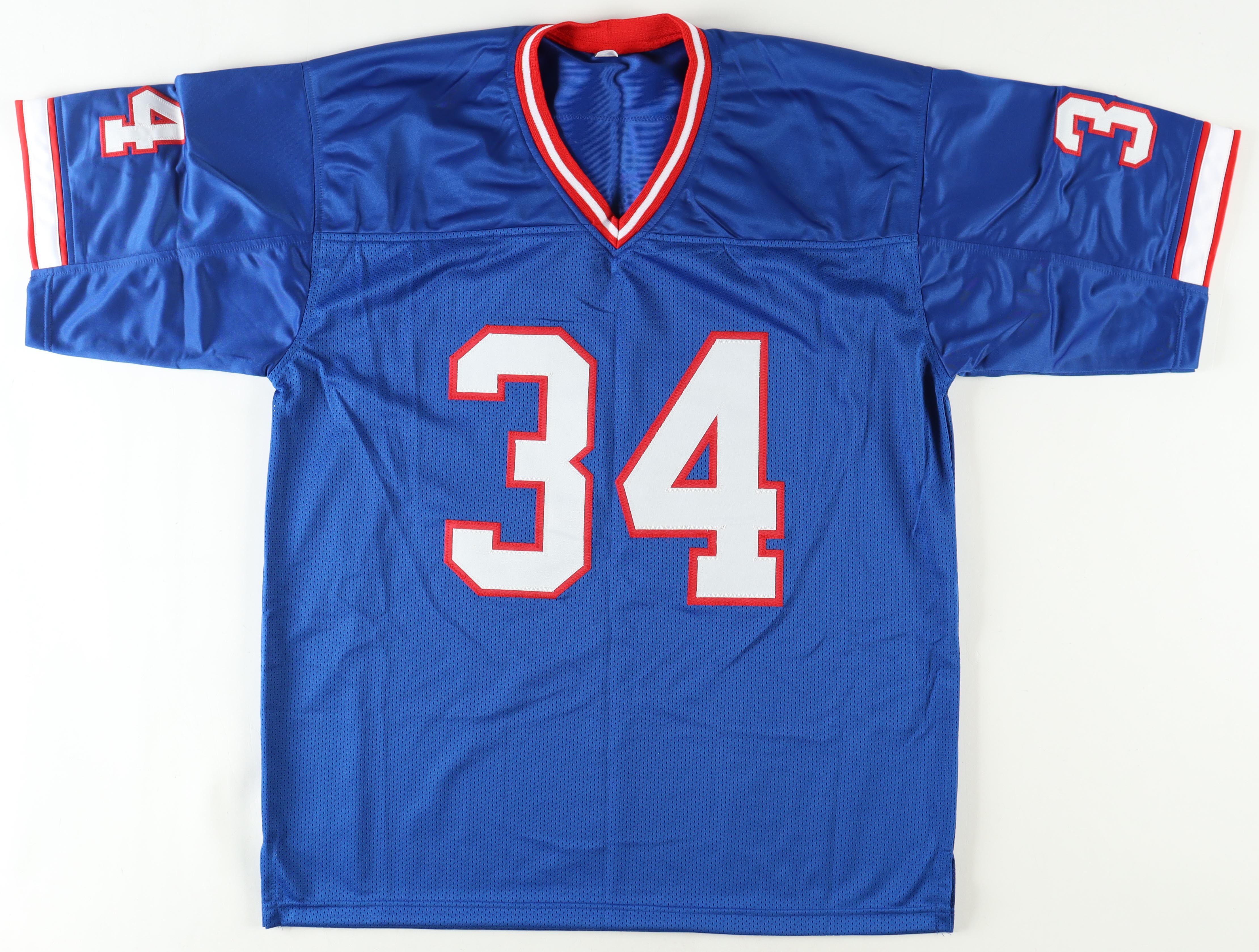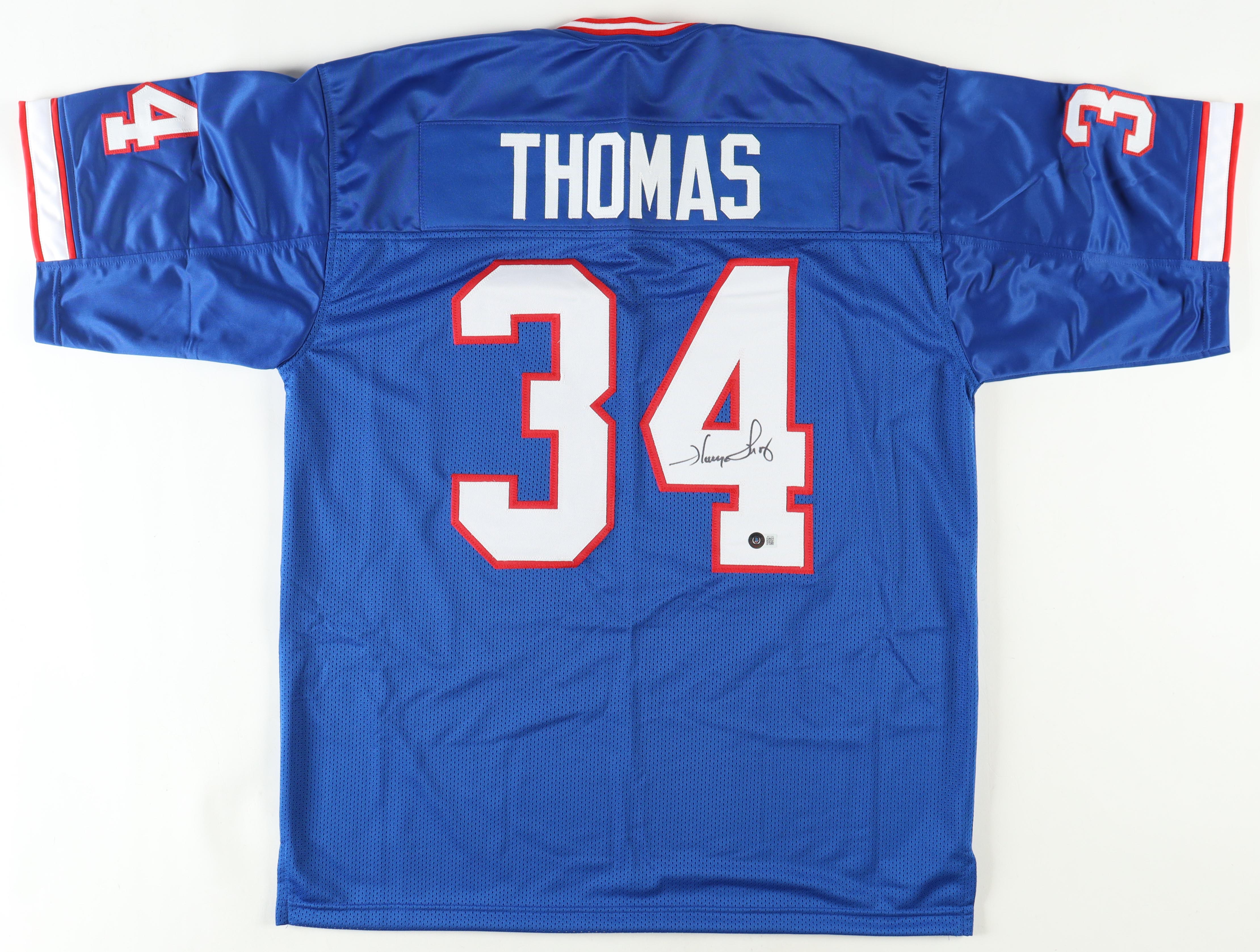 Custom jersey with everything sewn on, size XL. Hand-signed by Thurman Thomas (HOF).