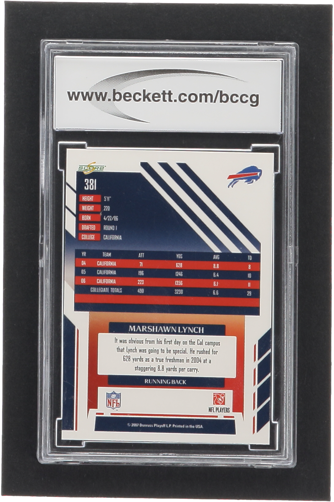 Marshawn Lynch 2007 Score #381 RC (BCCG 10)