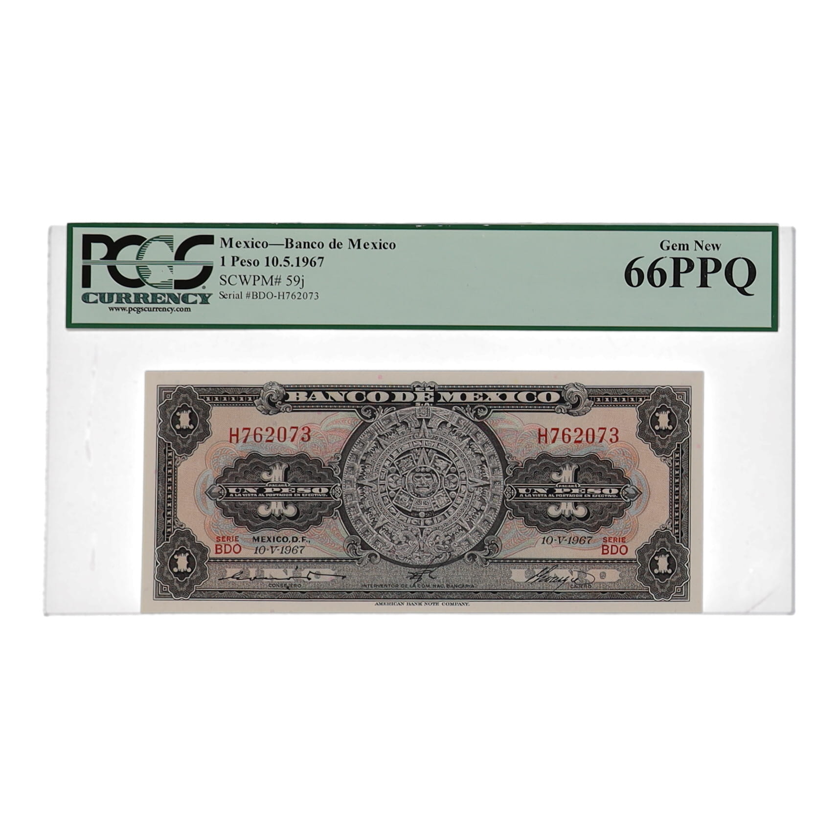 1967 Mexico Banco de Mexico 1 Peso (PCGS GEM NEW 66PPQ)