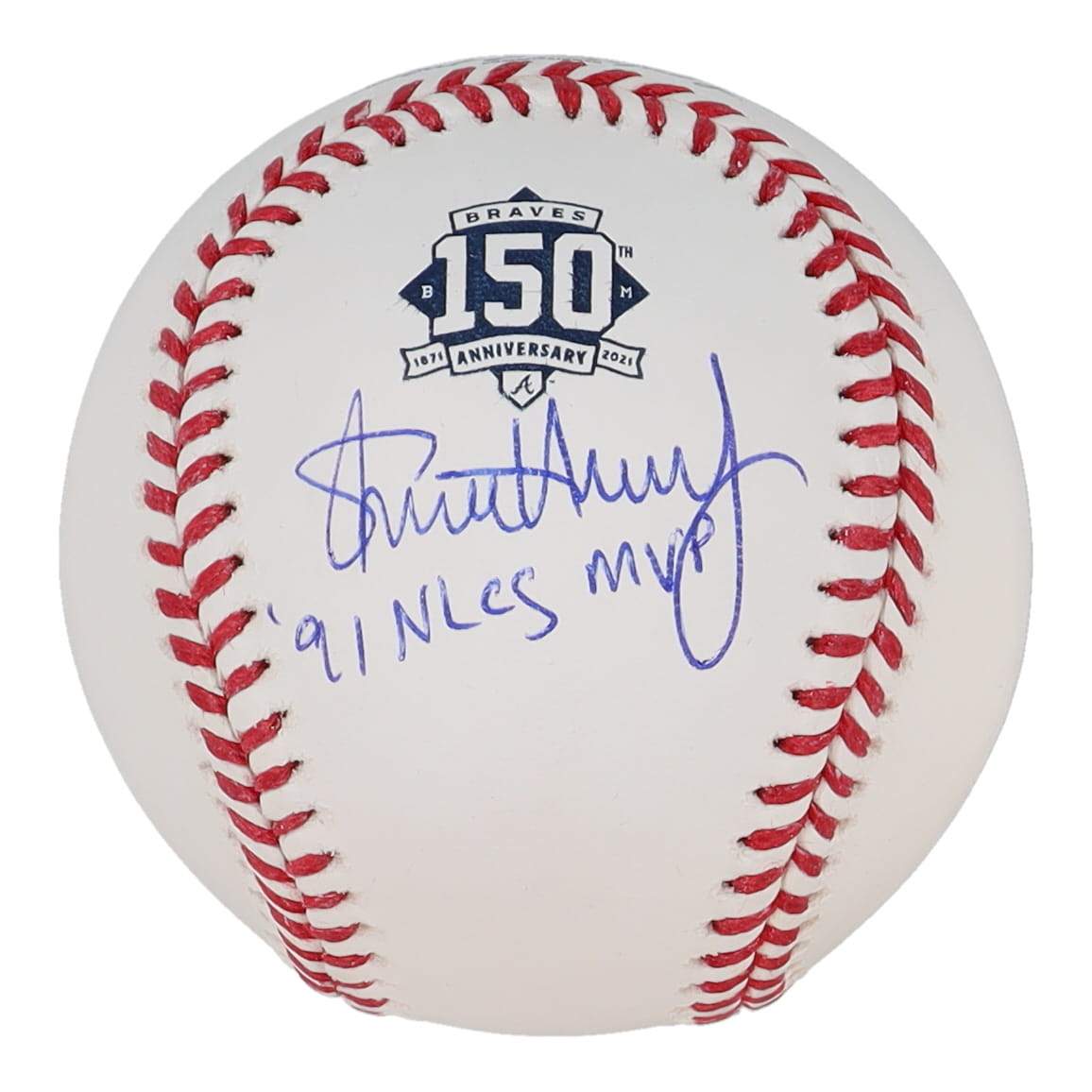 Steve Avery Signed 150th Anniversary Braves Logo Baseball Inscribed "91 NLCS MVP" (JSA)