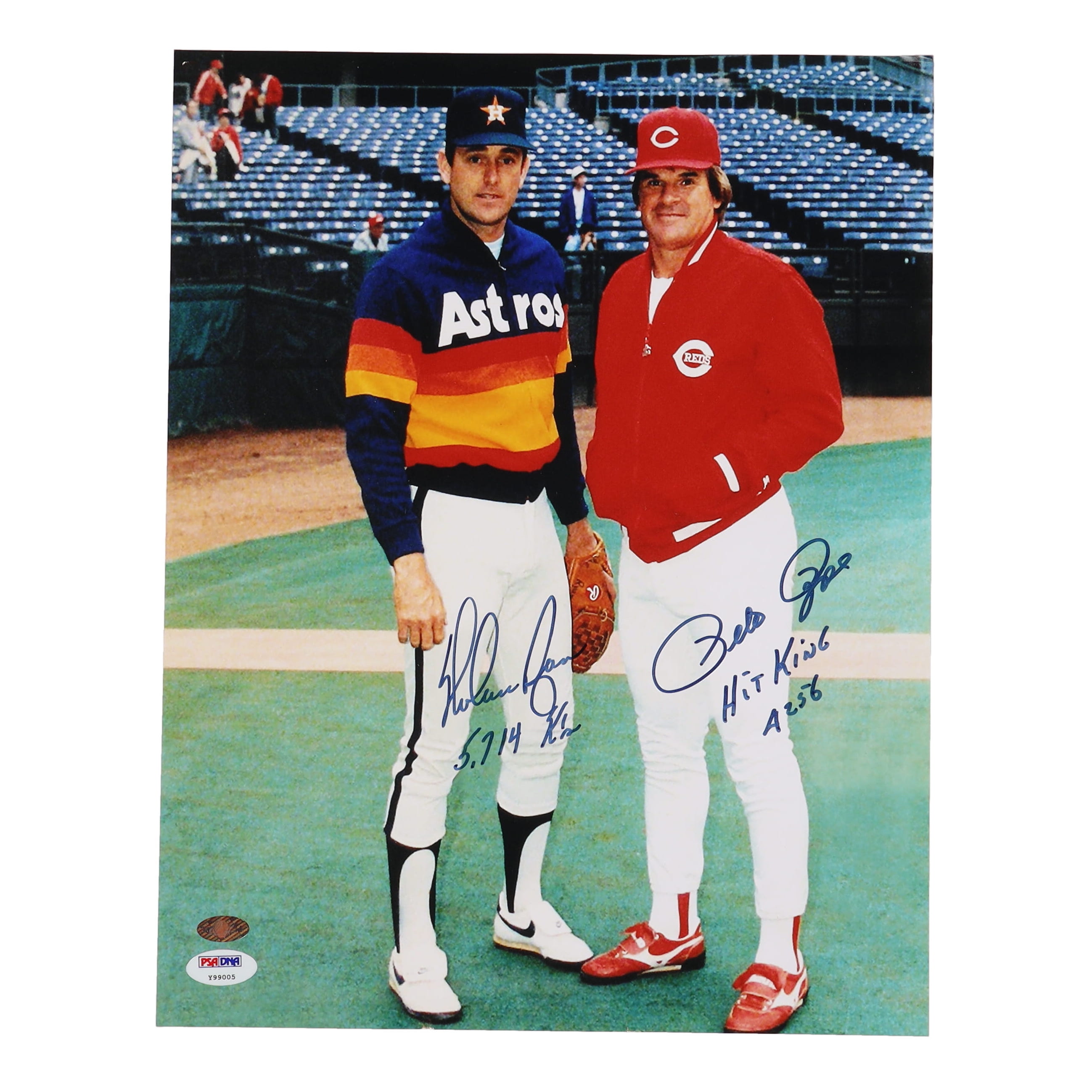 Nolan Ryan & Pete Rose Signed 11x14 Photo with (3) Inscriptions (PSA & Ryan)