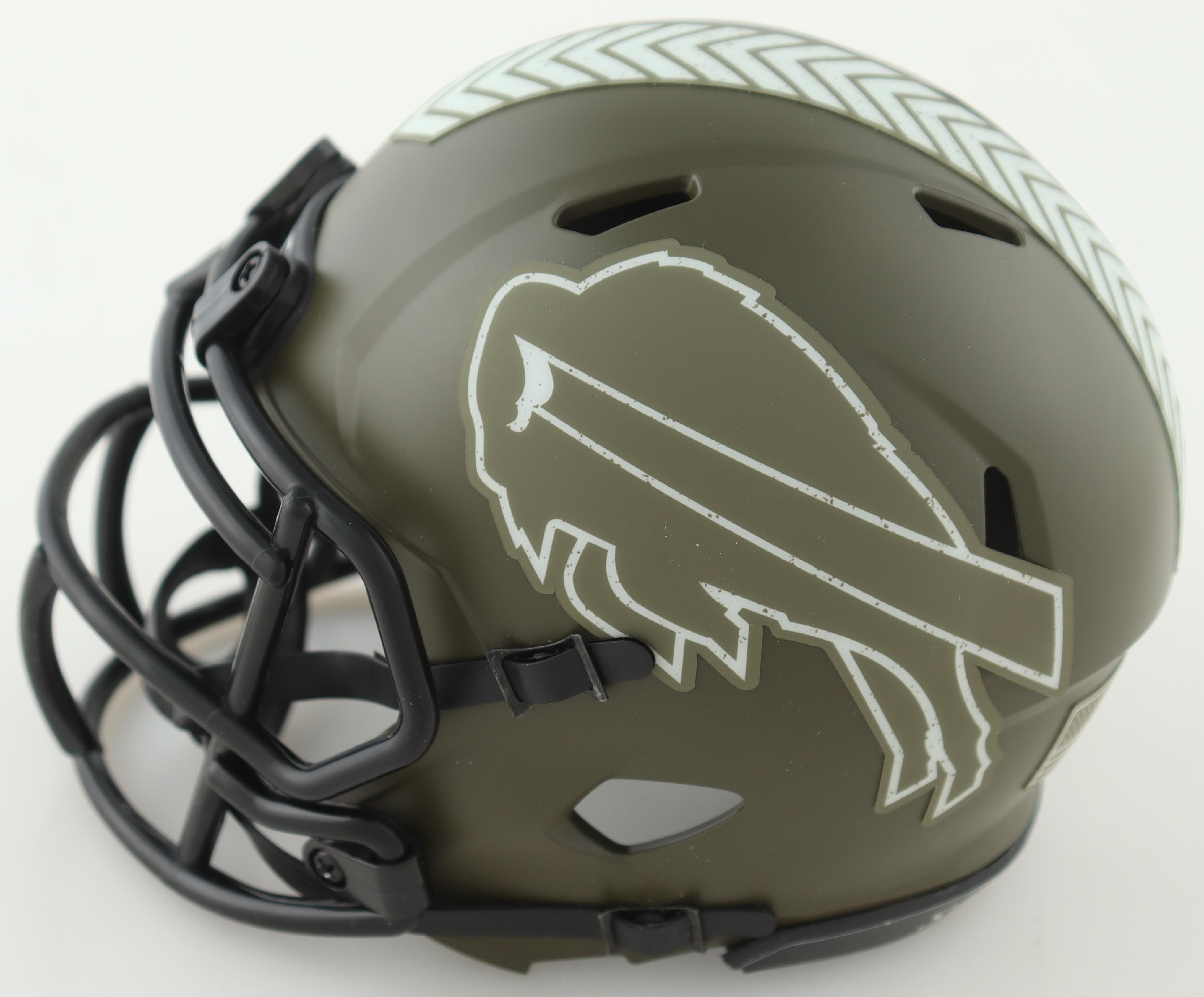 Riddell Buffalo Bills Salute to Service Alternate Speed Mini Helmet. Hand-signed by Josh Allen.