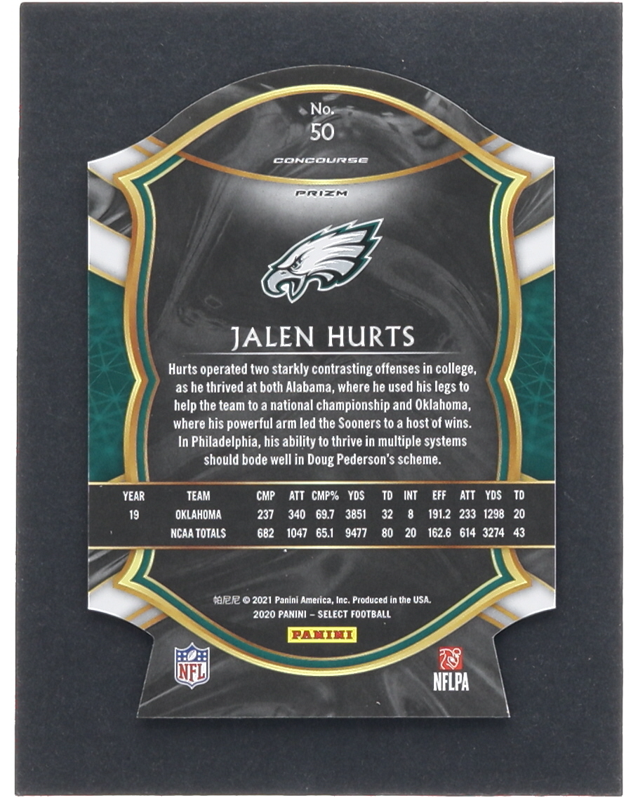 Jalen Hurts 2020 Select Prizm Blue Die Cut #50 RC