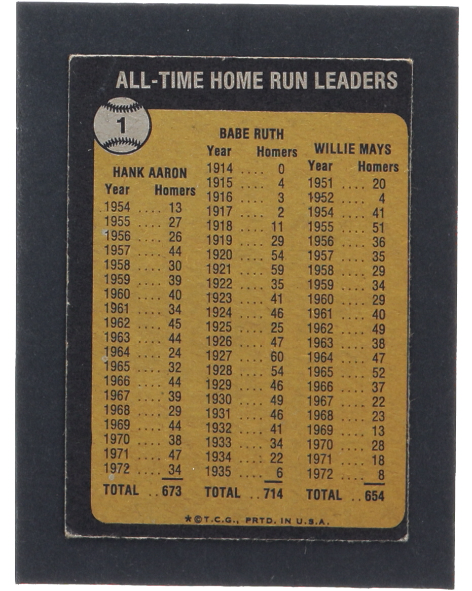 Babe Ruth / Hank Aaron / Willie Mays 1973 Topps #1 / All-Time Home Run Leaders