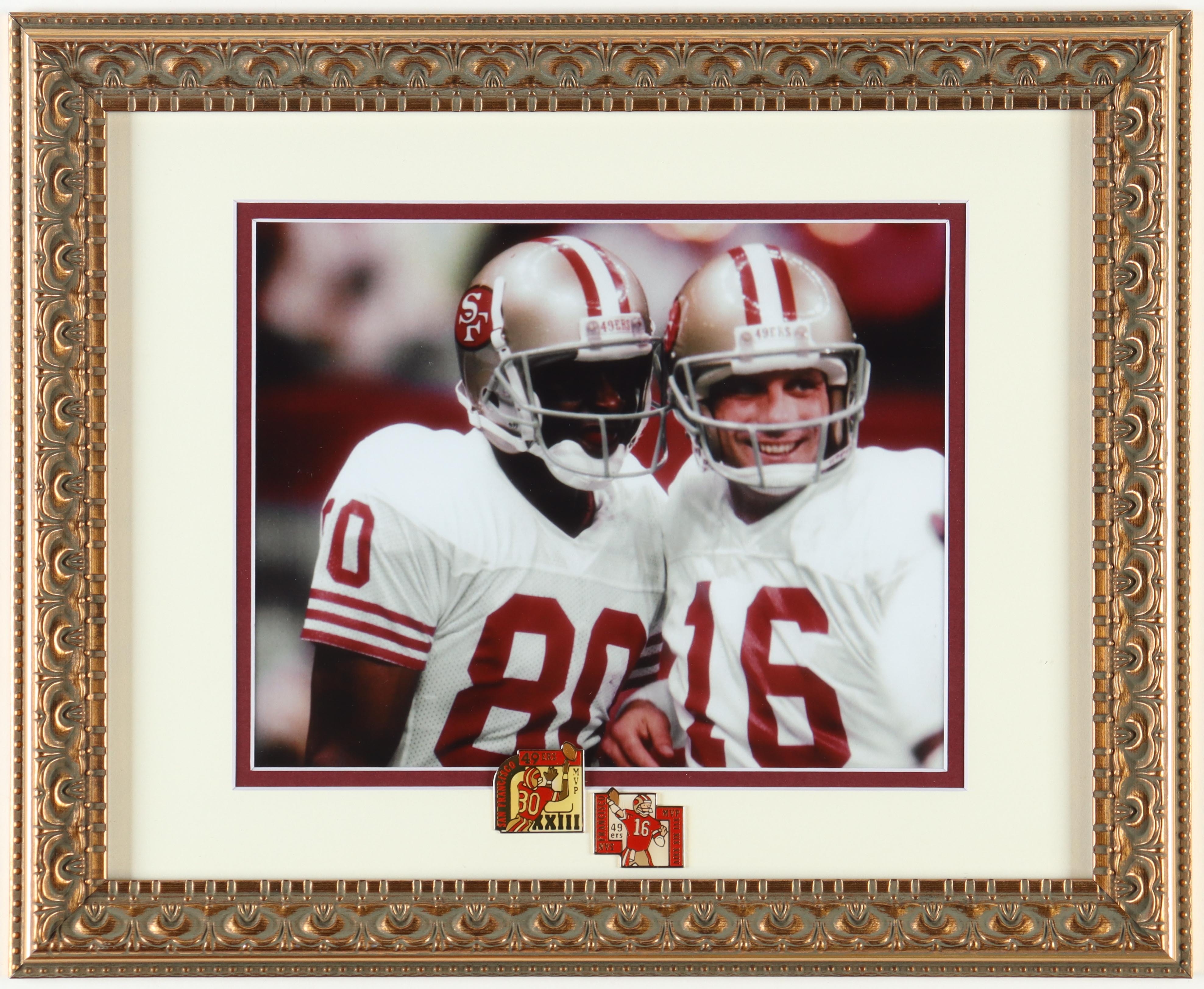 Joe Montana & Jerry Rice 13x16 Custom Photo Display With Joe Montana & Jerry Rice Official Super Bowl MVP Pins