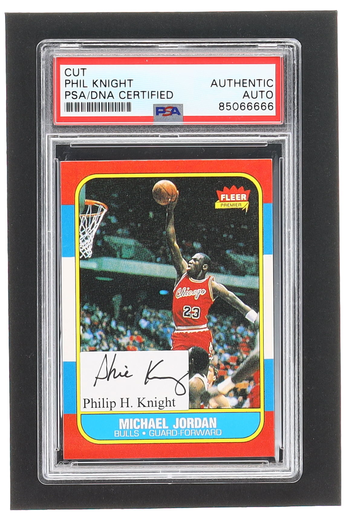 Phil Knight Signed Cut on 1986-87 Fleer #57 Michael Jordan RC Reprint (PSA)