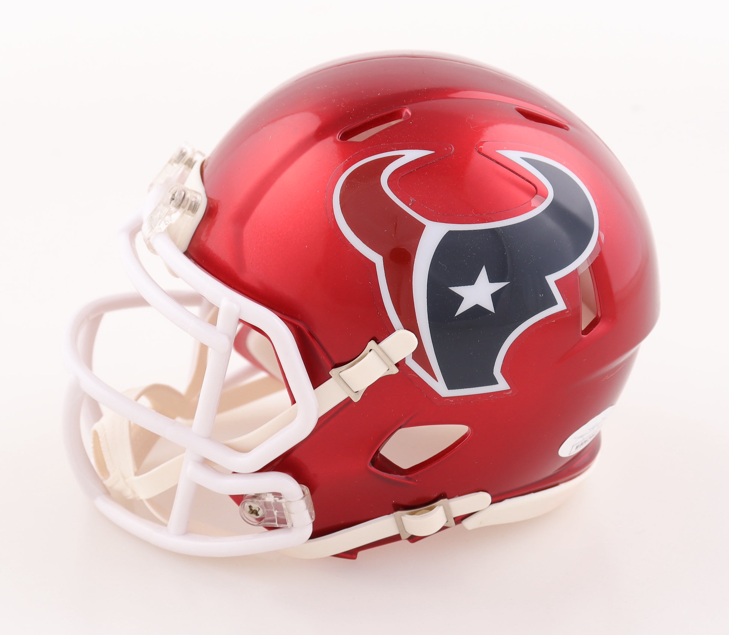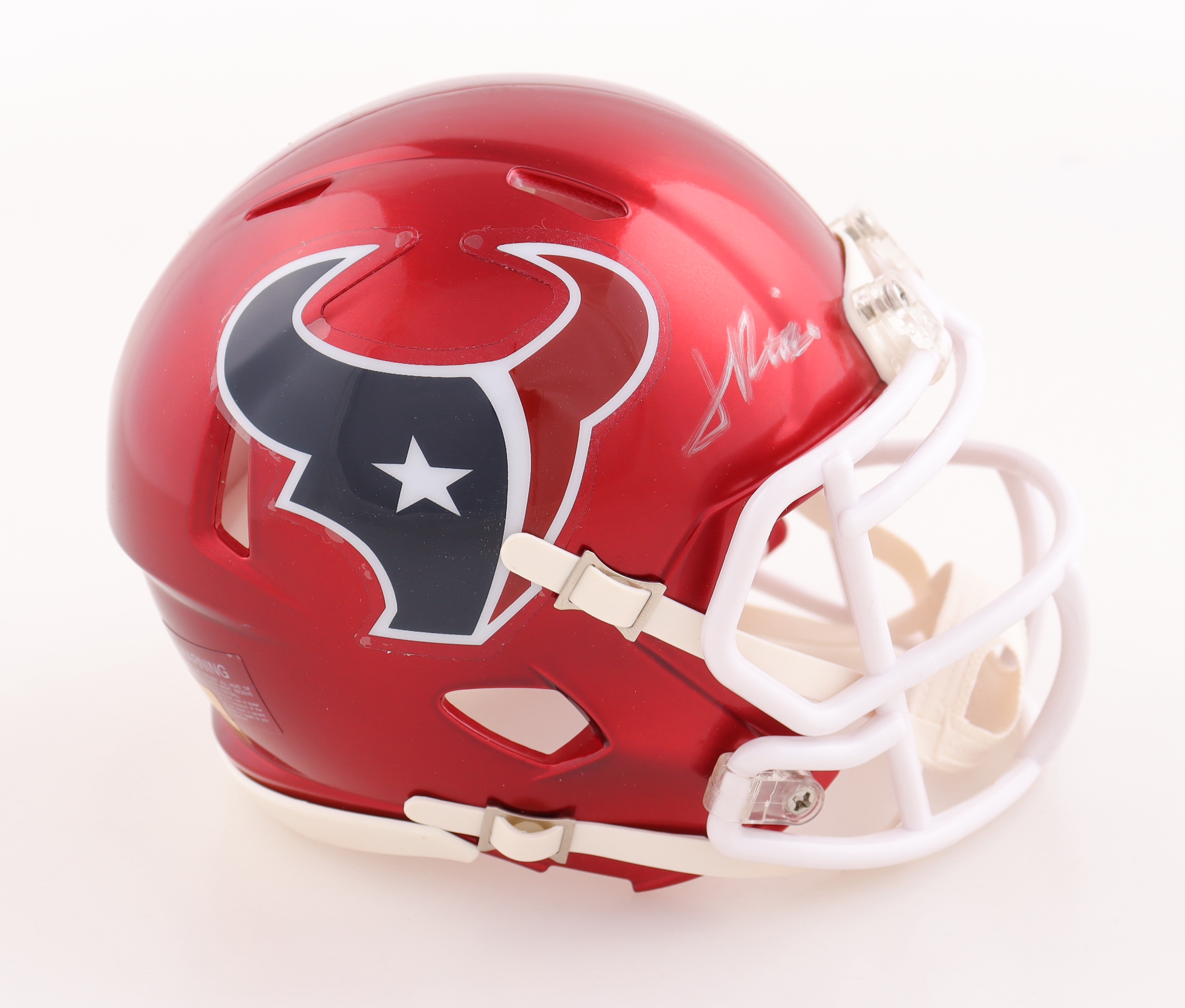 Riddell Houston Texans Flash Alternate Speed mini helmet. Hand signed by Jalen Pitre. Please note the signature is fading.