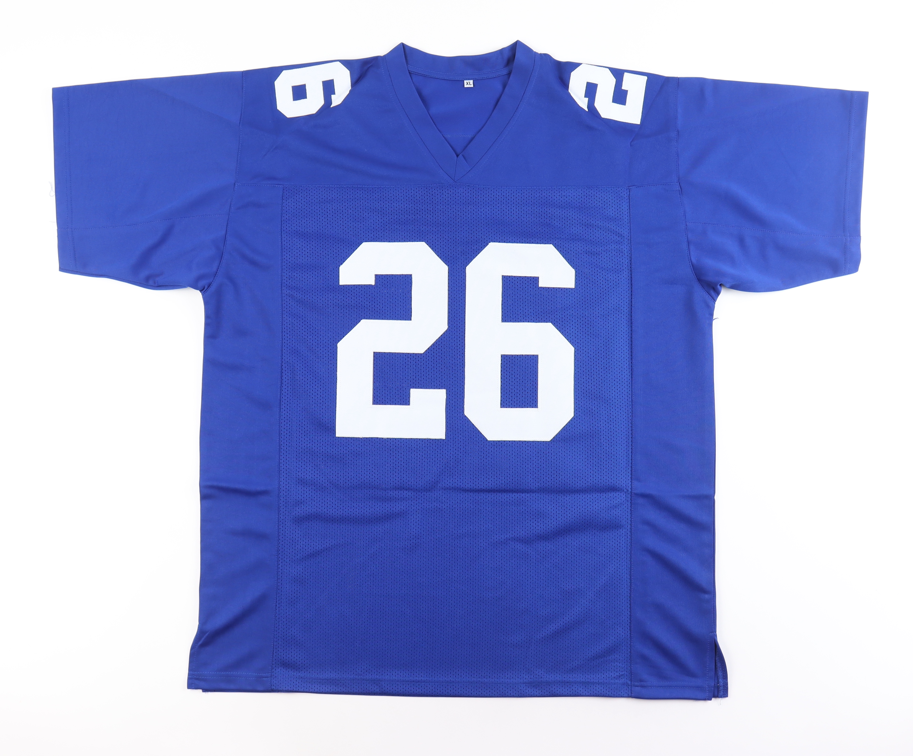Custom jersey. Everything sewn on, size XL. Hand-signed by Saquon Barkley.
