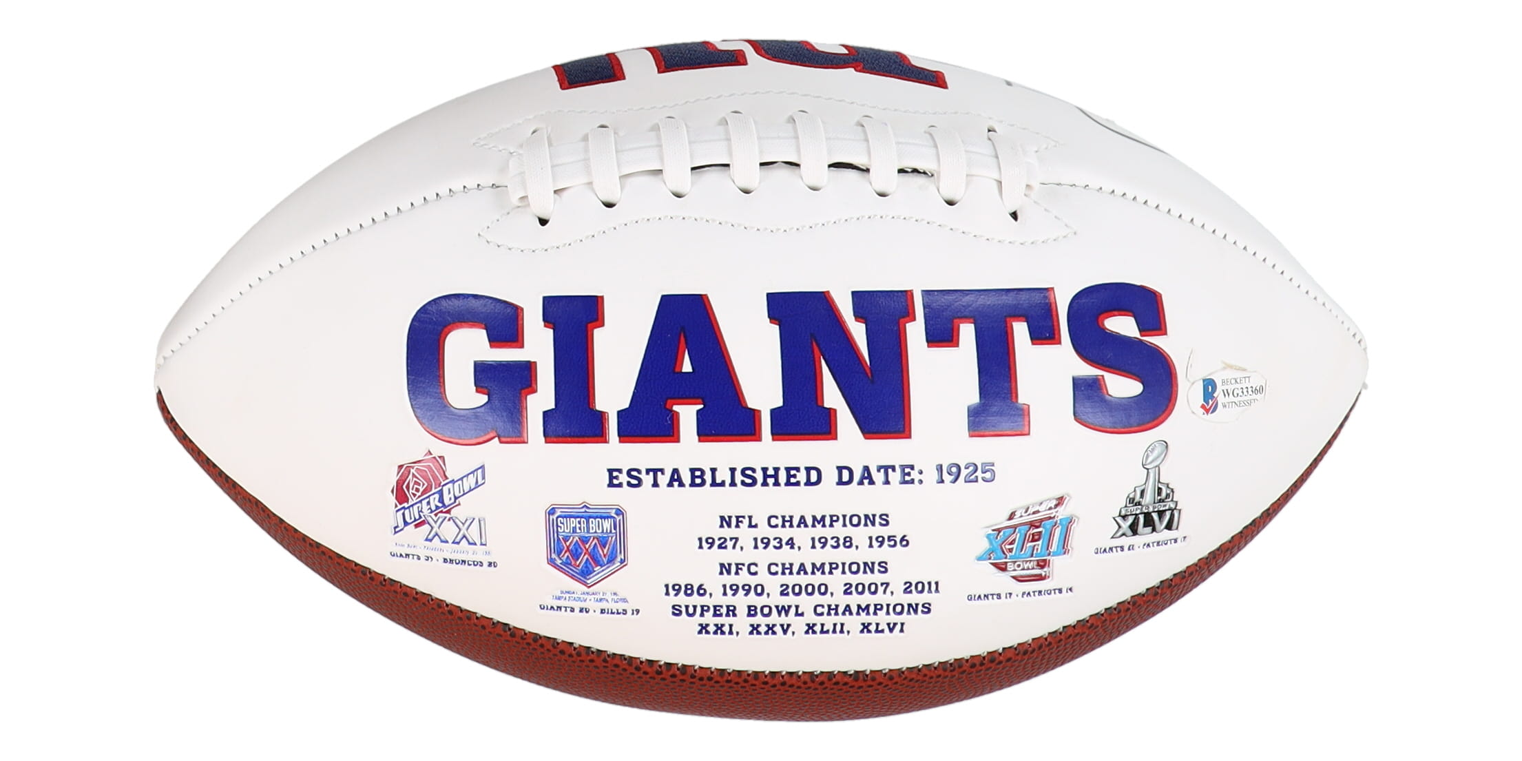New York Giants logo football. Hand-signed by Lawrence Taylor (HOF).