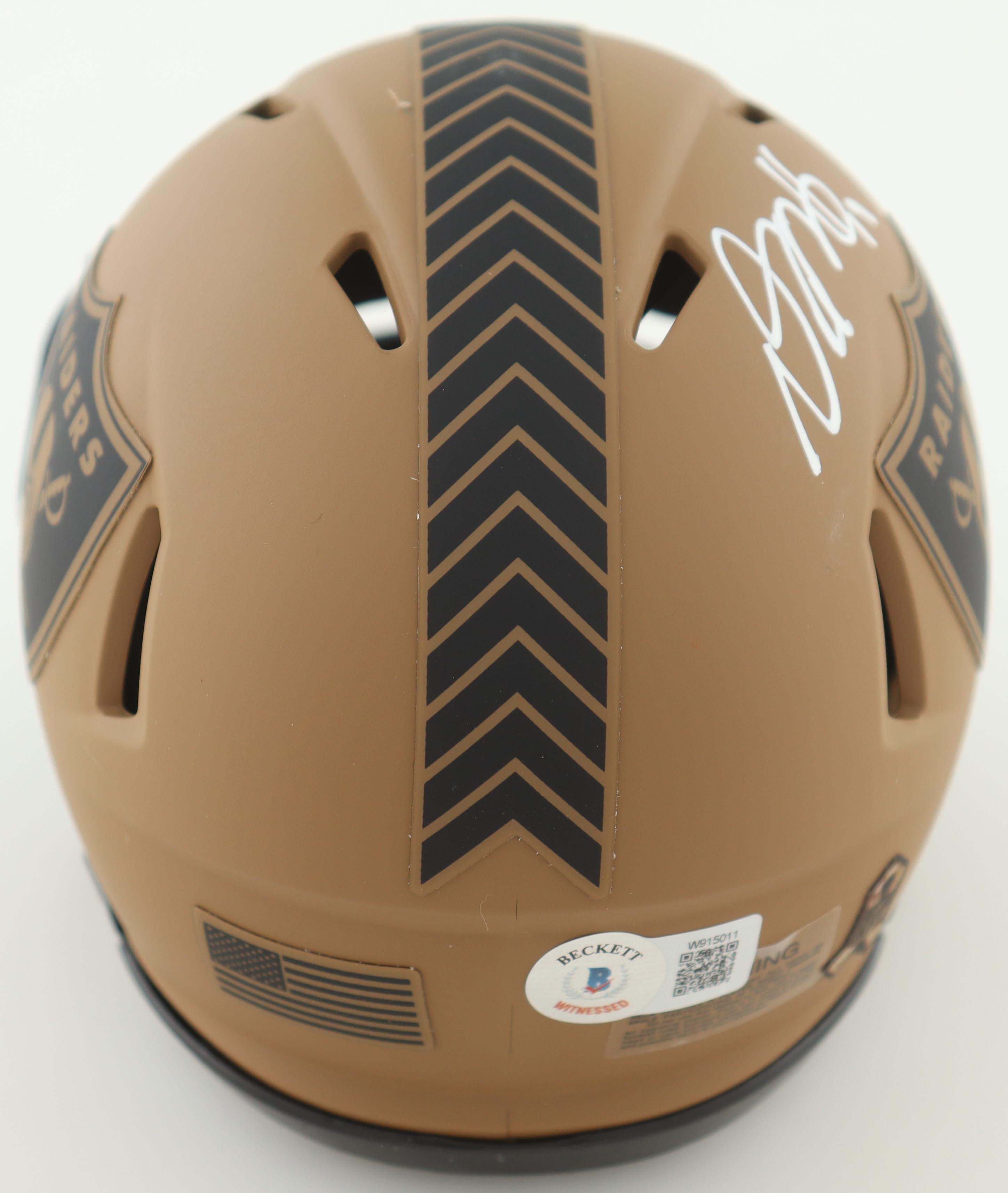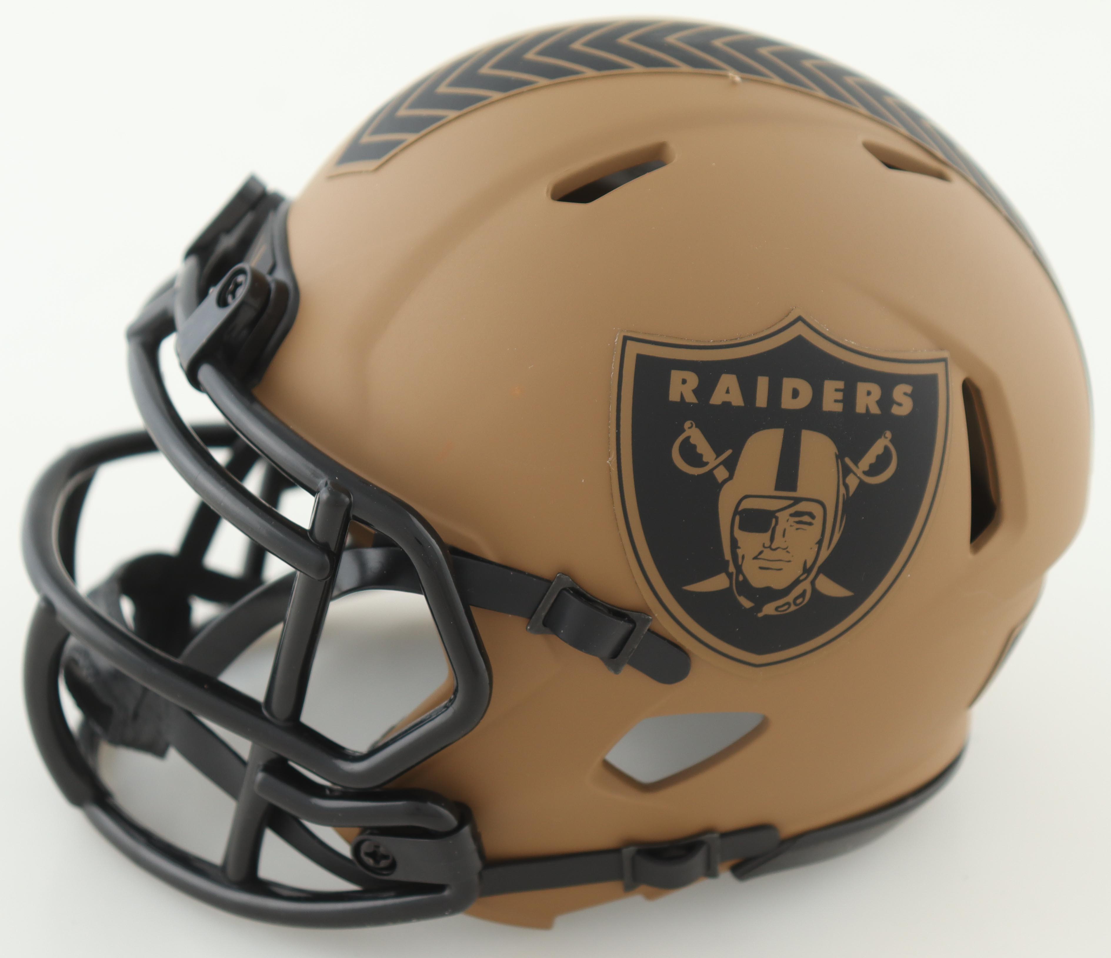 Riddell Las Vegas Raiders Salute To Service Speed mini helmet. Hand-signed by Davante Adams and Jakobi Meyers.