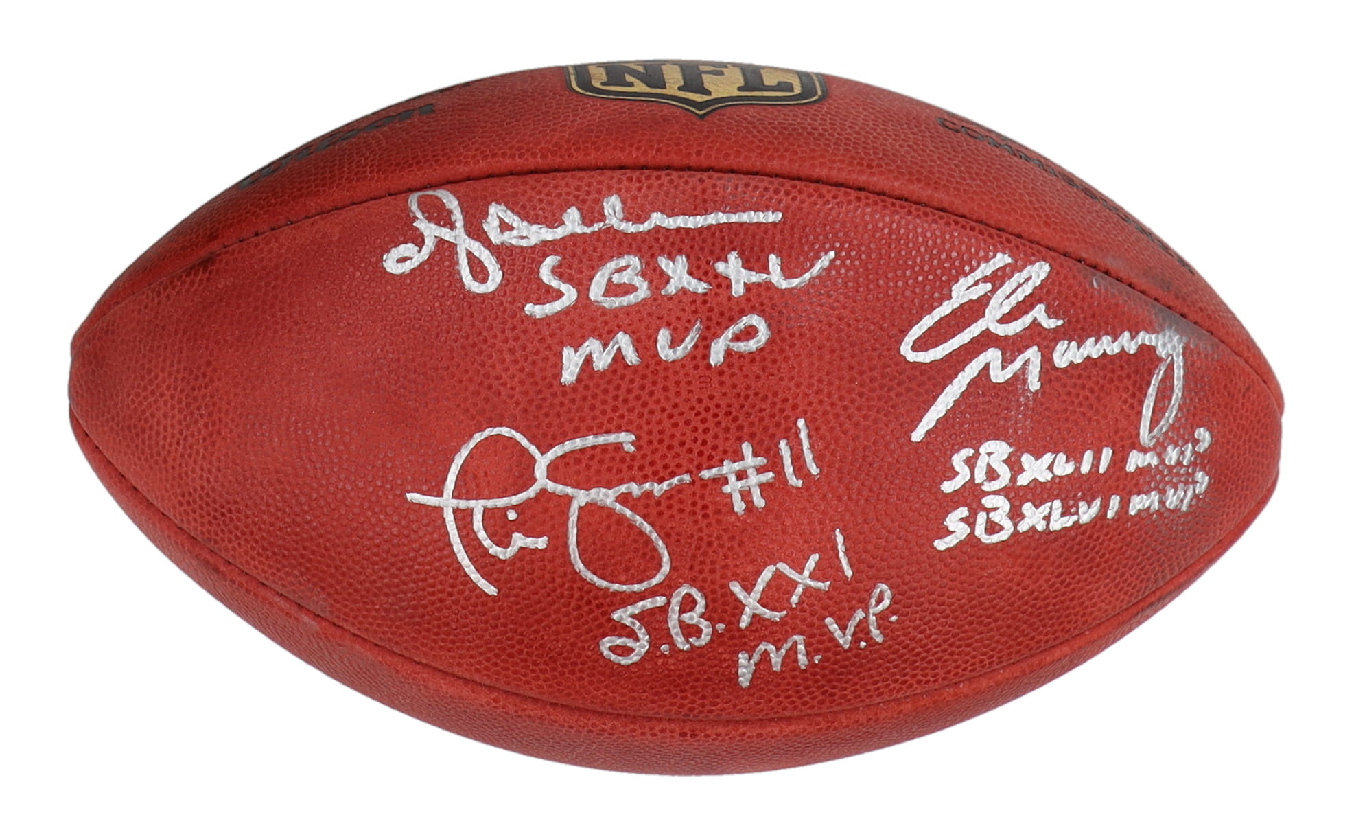 Eli Manning, Phil Simms & Otis Anderson Signed NFL "The Duke" Football with Super Bowl MVP Inscriptions (Beckett)