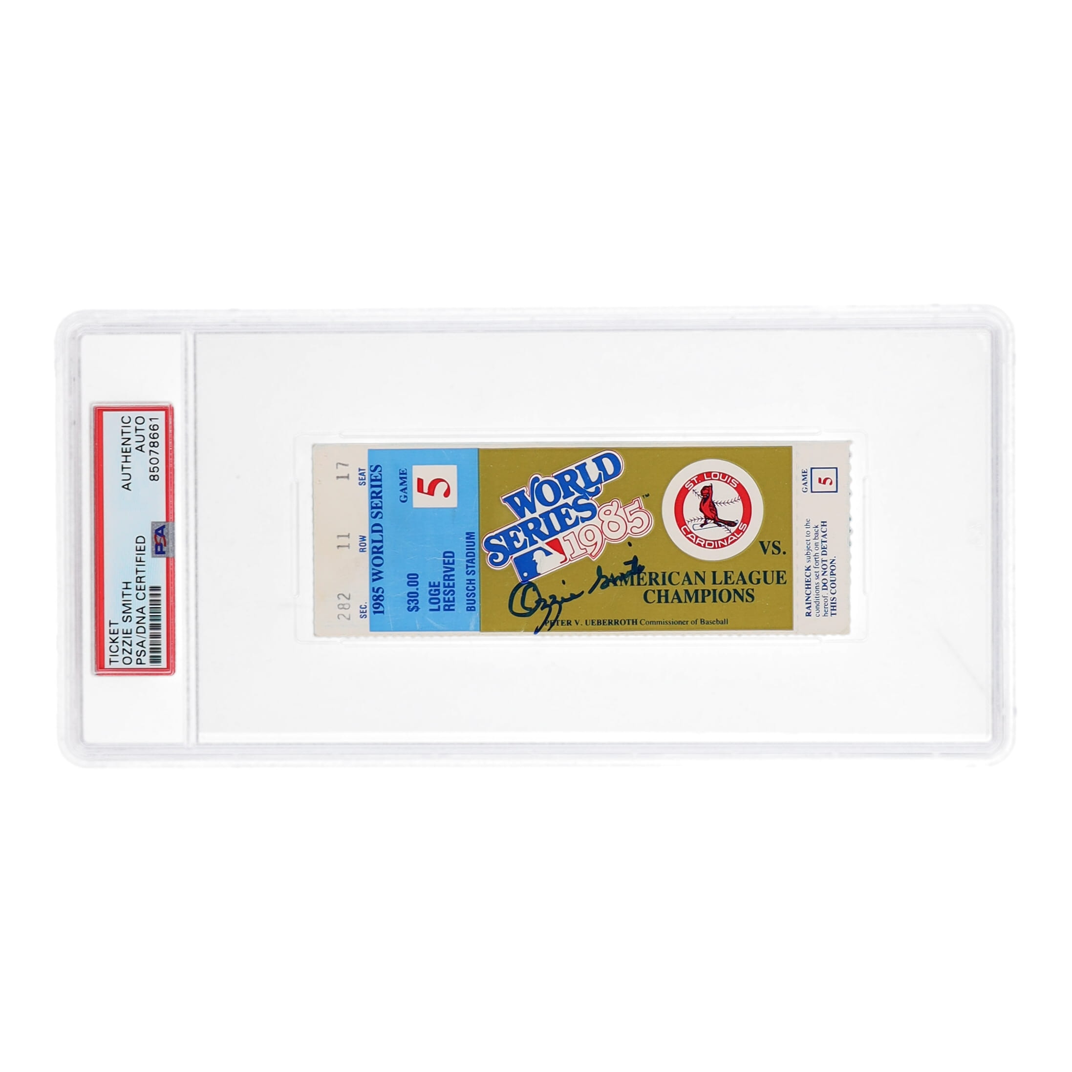 Ozzie Smith Signed Cardinals Original 1985 World Series Game 5 Ticket (PSA)