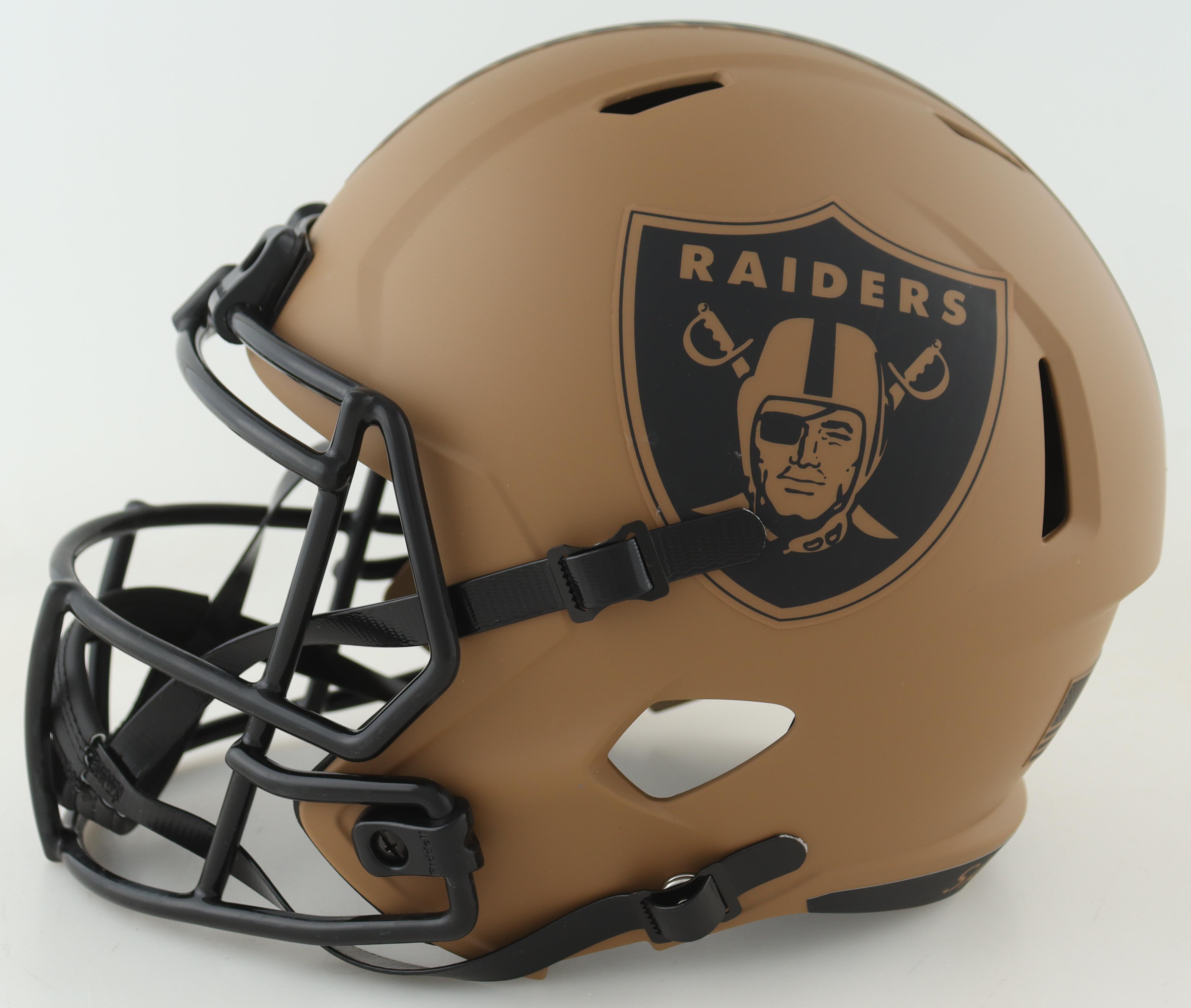 Riddell Las Vegas Raiders Full-Size Salute to Service Alternate Speed Helmet. Hand Signed by Davante Adams.