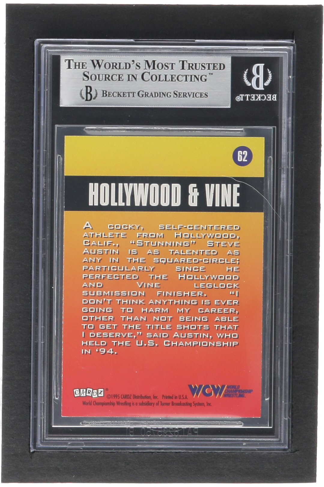 "Stunning" Steve Austin Signed 1995 CARDZ WCW Main Event #62 Hollywood & Vine (BGS)
