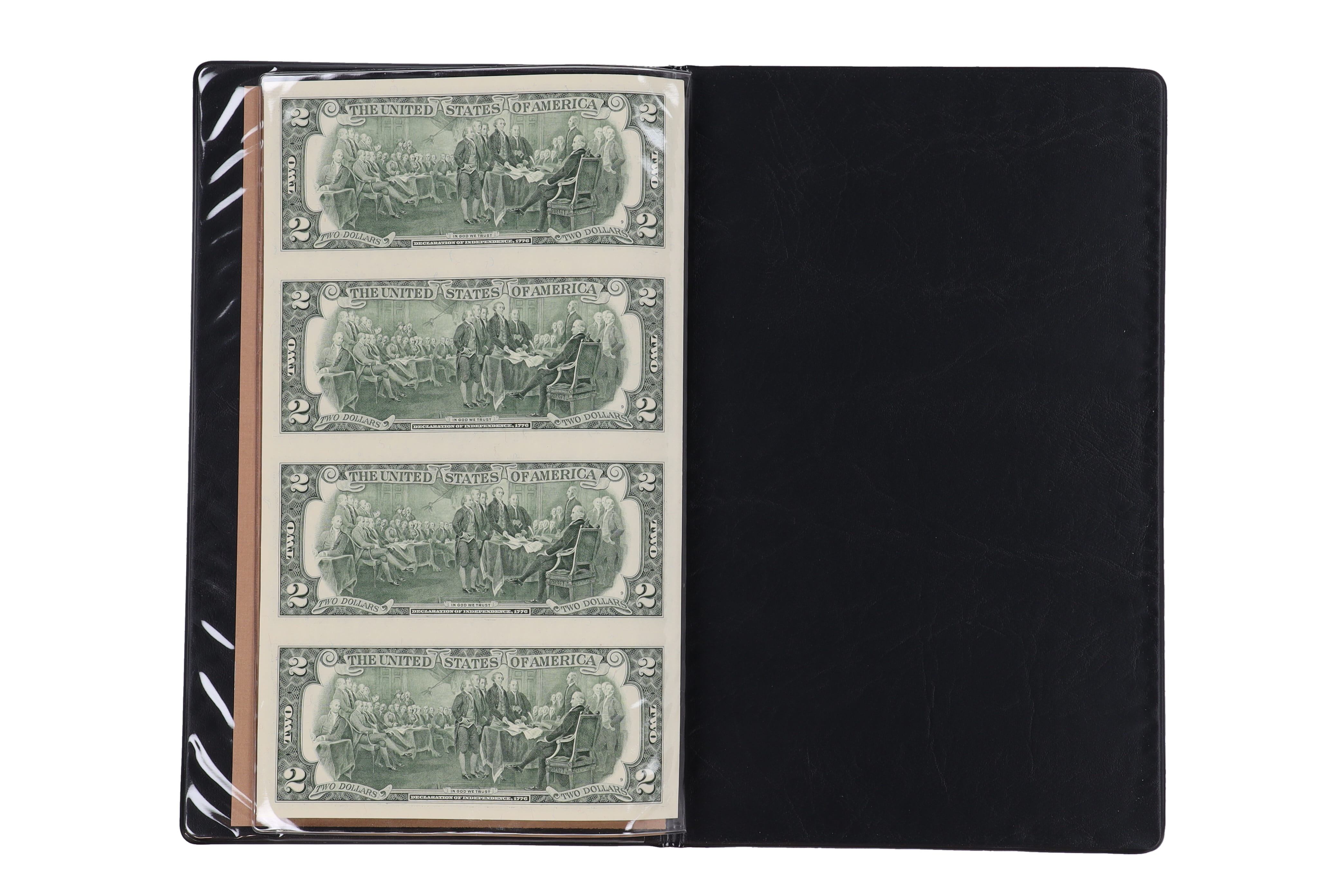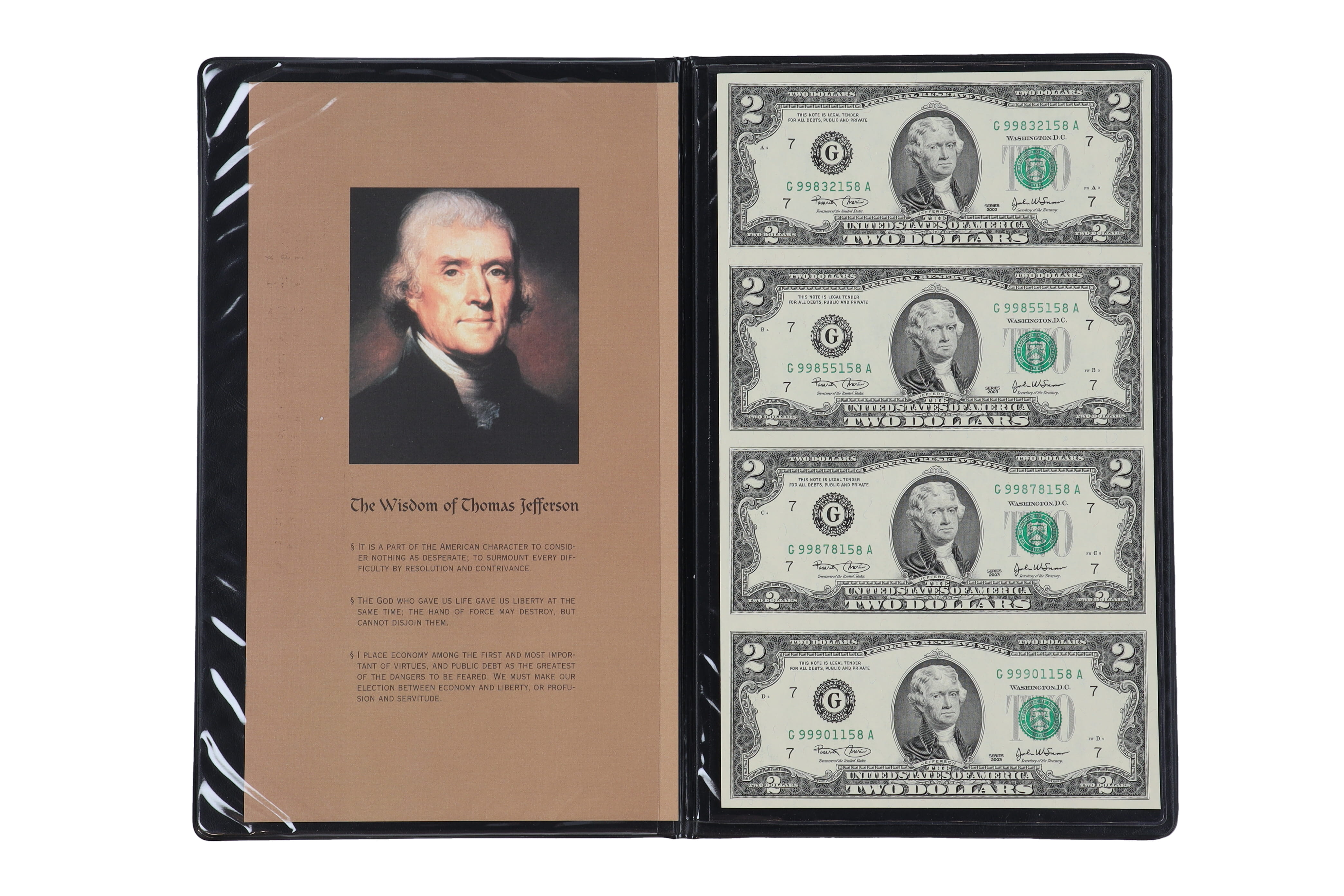 Set of (4) Uncut 2003 $2 Two-Dollar U.S. Bills Sheet with Presentation Folder