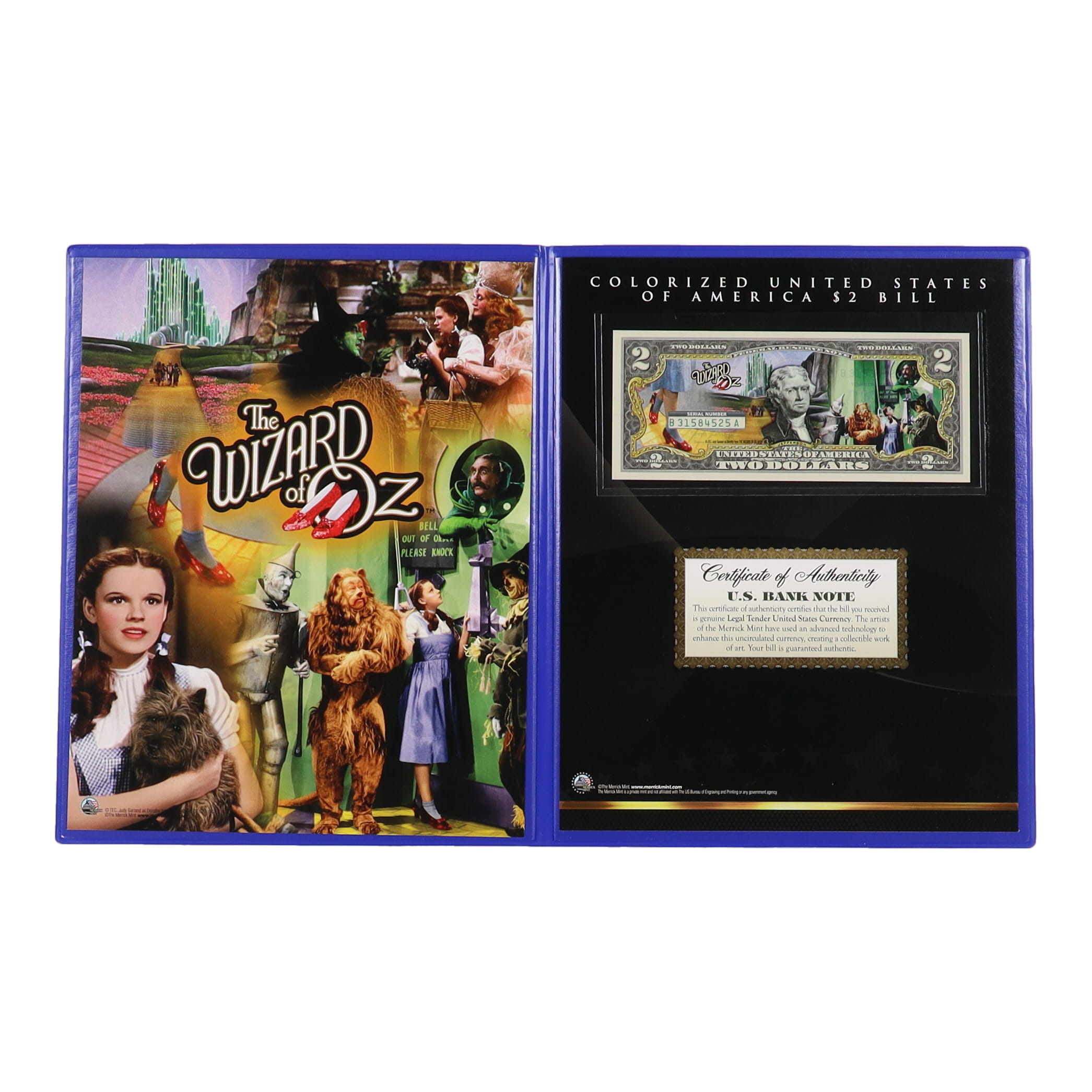 Wizard of Oz Genuine Legal Tender Colorized U.S. $2 Bill Commemorative Edition Bank Note. Includes folder as shown.