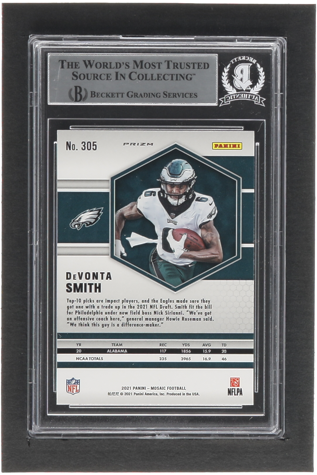 DeVonta Smith Signed 2021 Panini Mosaic Silver #305 RC (BGS)