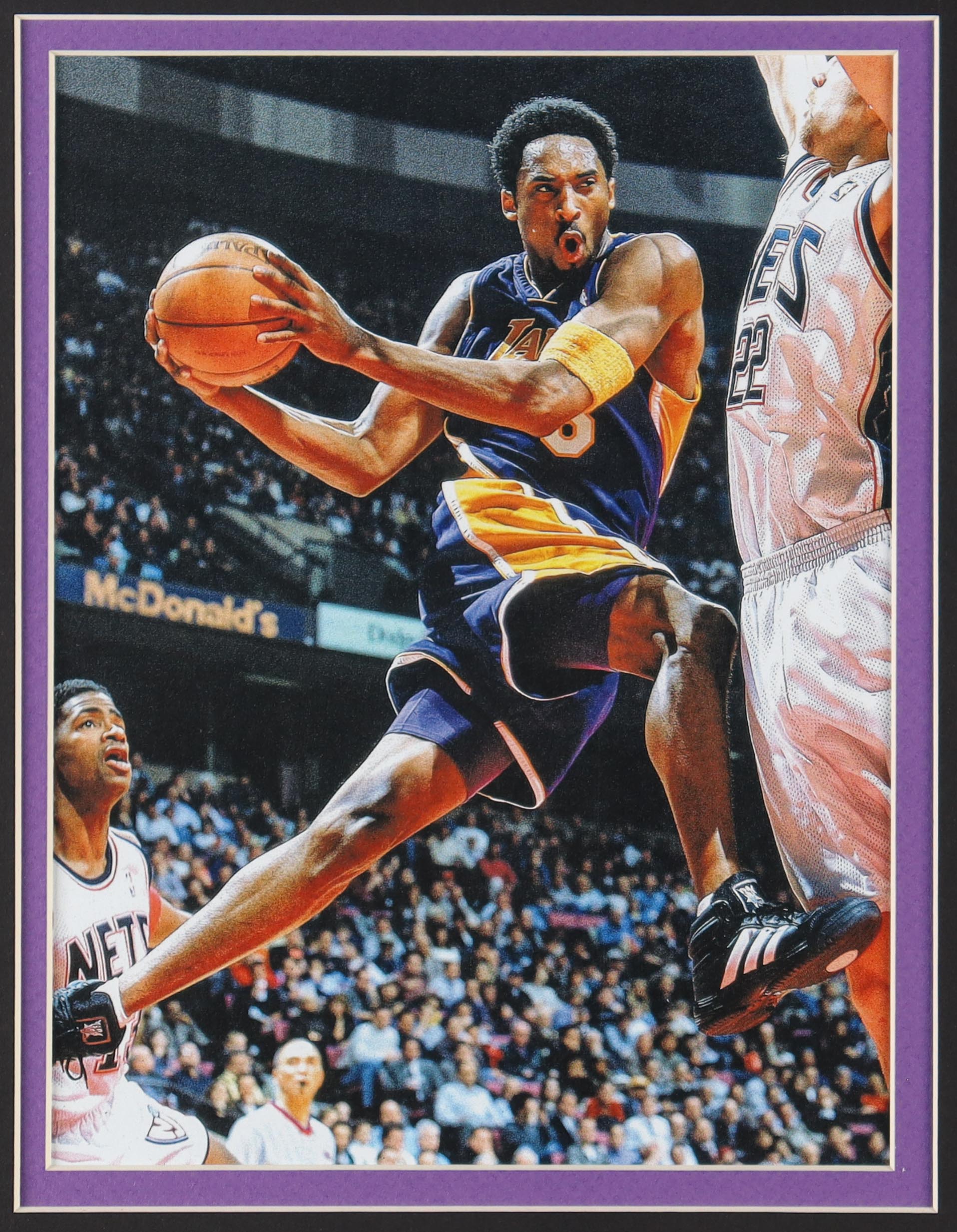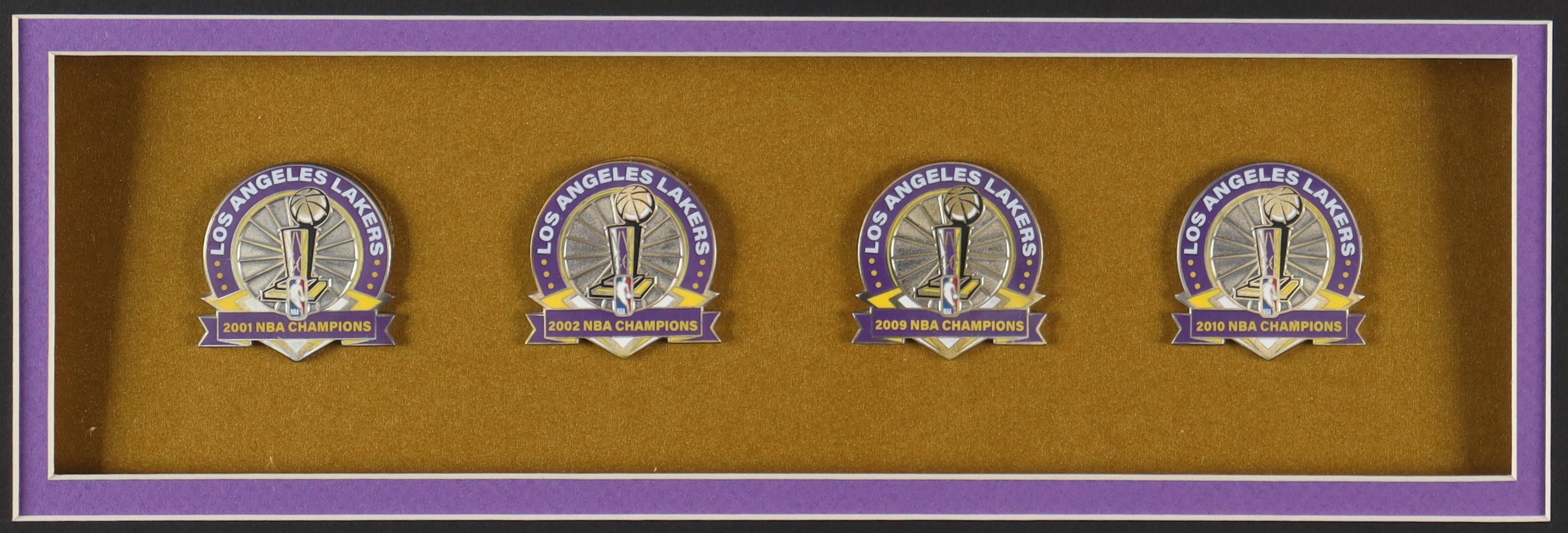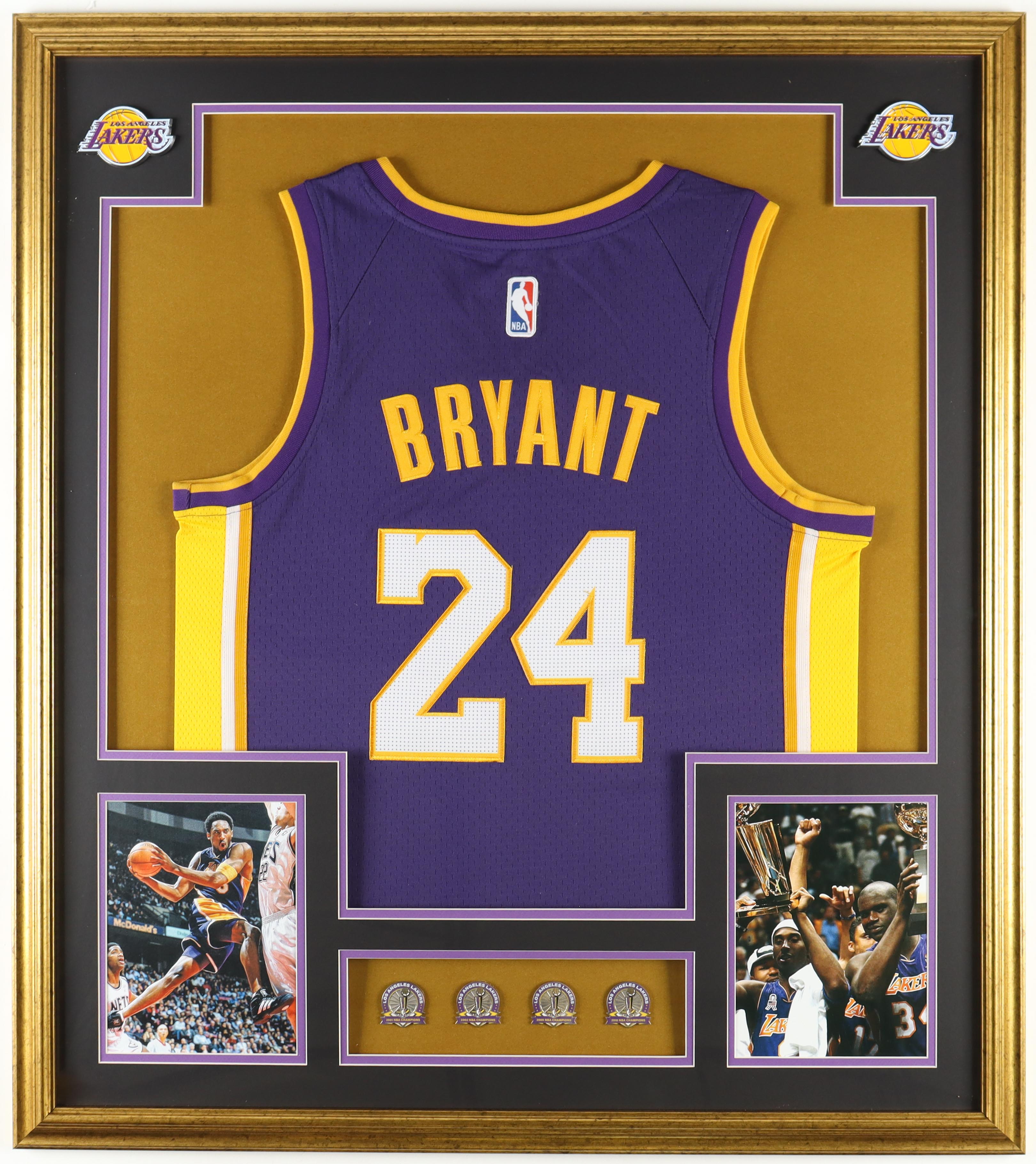 Kobe Bryant Custom Framed Jersey Display with (4) Lakers LE Official Championship Pins