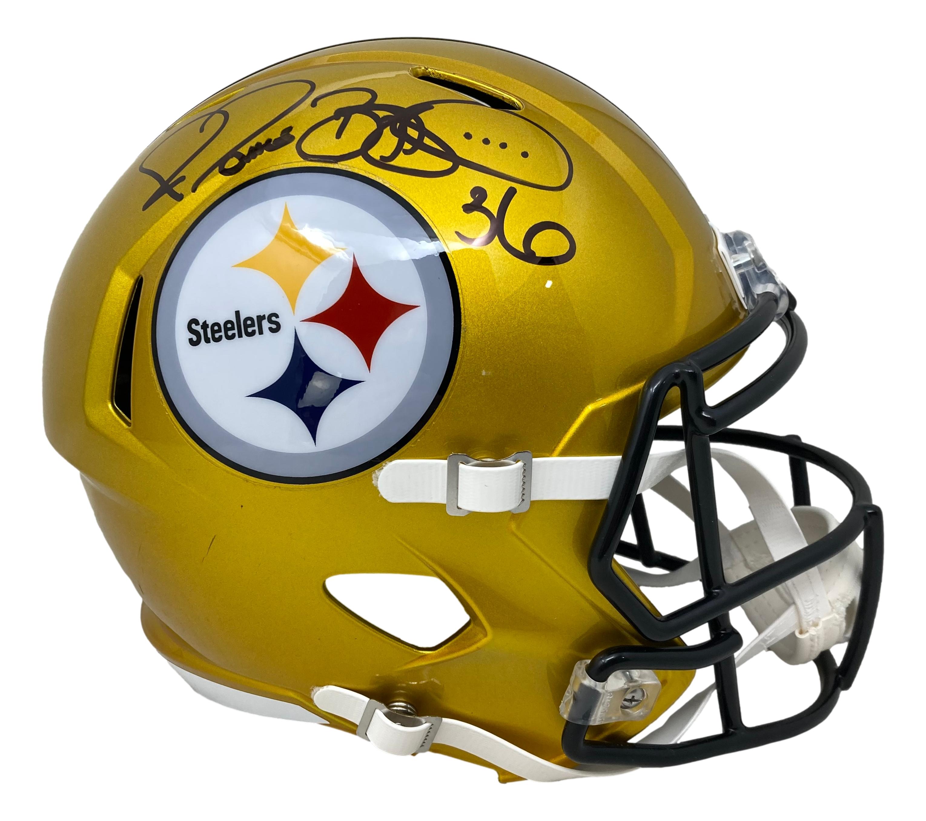 Riddell Pittsburgh Steelers full-size flash alternate speed helmet. Hand-signed by Jerome Bettis (HOF).