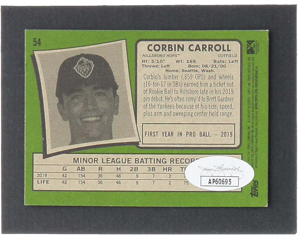 Corbin Carroll Signed 2020 Topps Heritage Minors #54 RC (JSA)