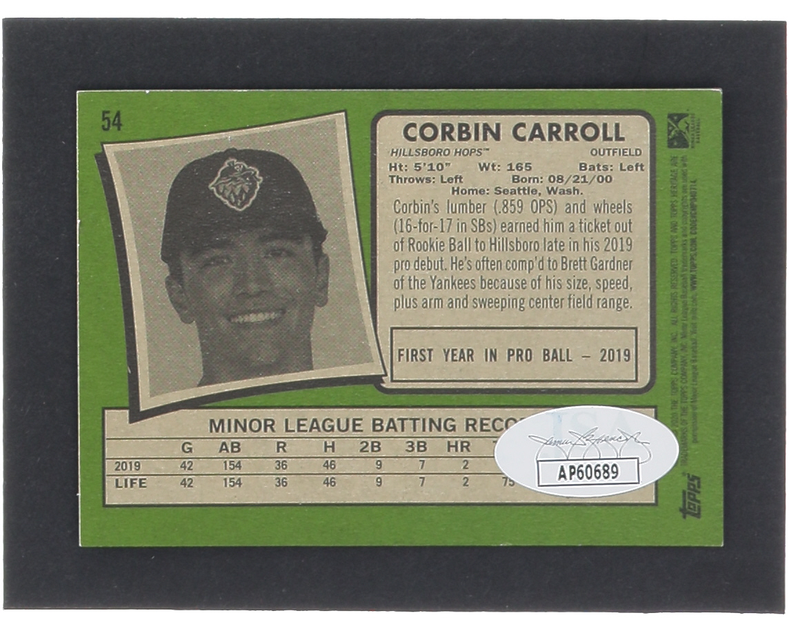 Corbin Carroll Signed 2020 Topps Heritage Minors #54 RC (JSA)