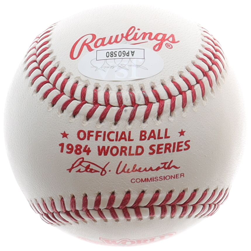 Rawlings Official 1984 World Series baseball. Hand-signed and inscribed by Alan Trammell (Detroit Tigers, HOF).