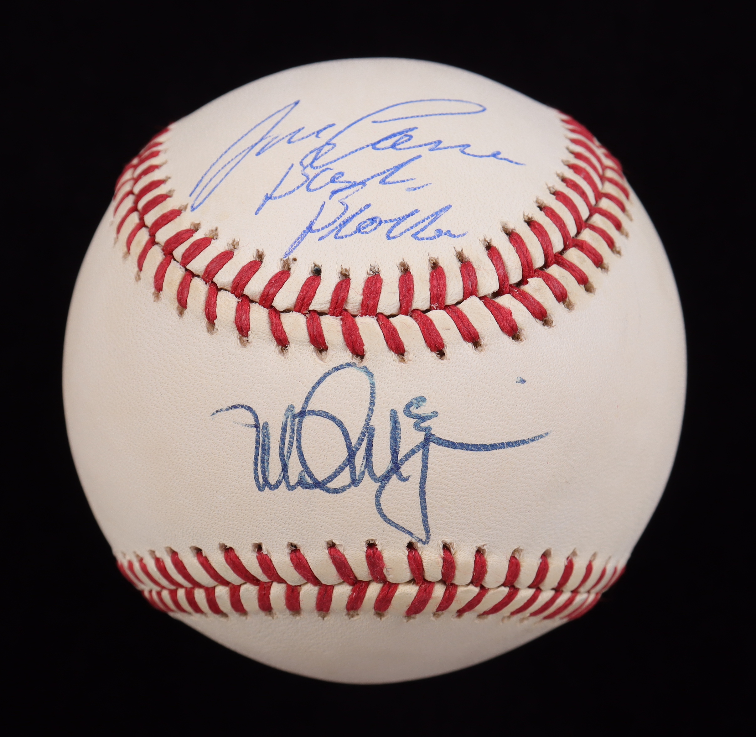 Rawlings Official American League baseball has been hand-signed and inscribed by Mark McGwire (Oakland Athletics) and Jose Canseco (Oakland Athletics). Please note, the baseball is naturally toned.