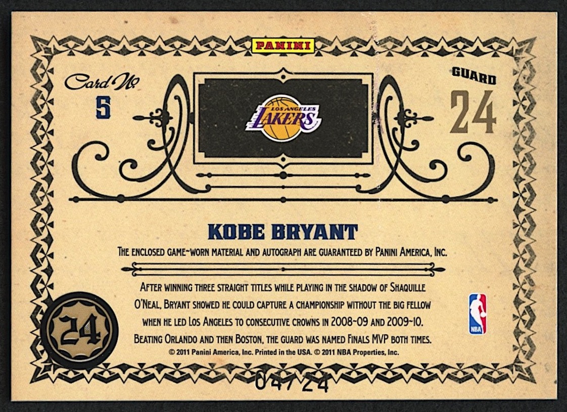 Kobe Bryant 2010-11 Panini Gold Standard Champions Game Worn Relic Autograph #5 #04/24