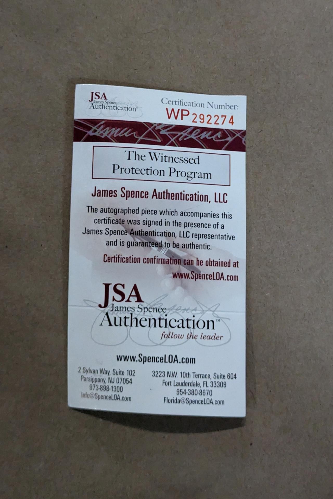 The autograph(s) includes an official James Spence Authentication (JSA) hologram and matching COA for authenticity purposes. The signing of this item was witnessed by JSA.