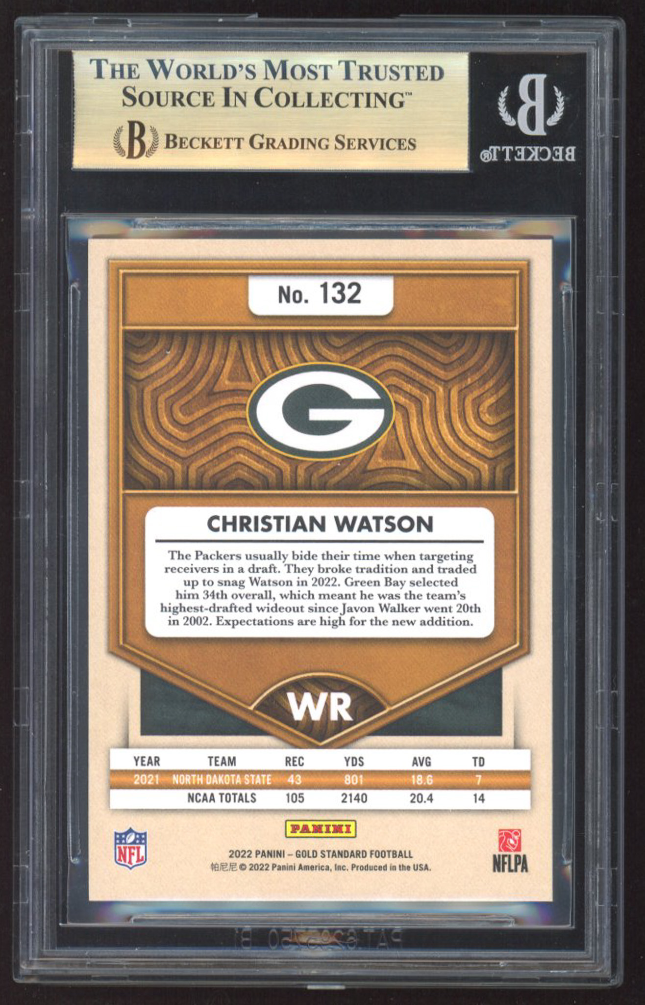 Christian Watson 2022 Panini Gold Standard #132 #33/99 RC (BGS 9.5)