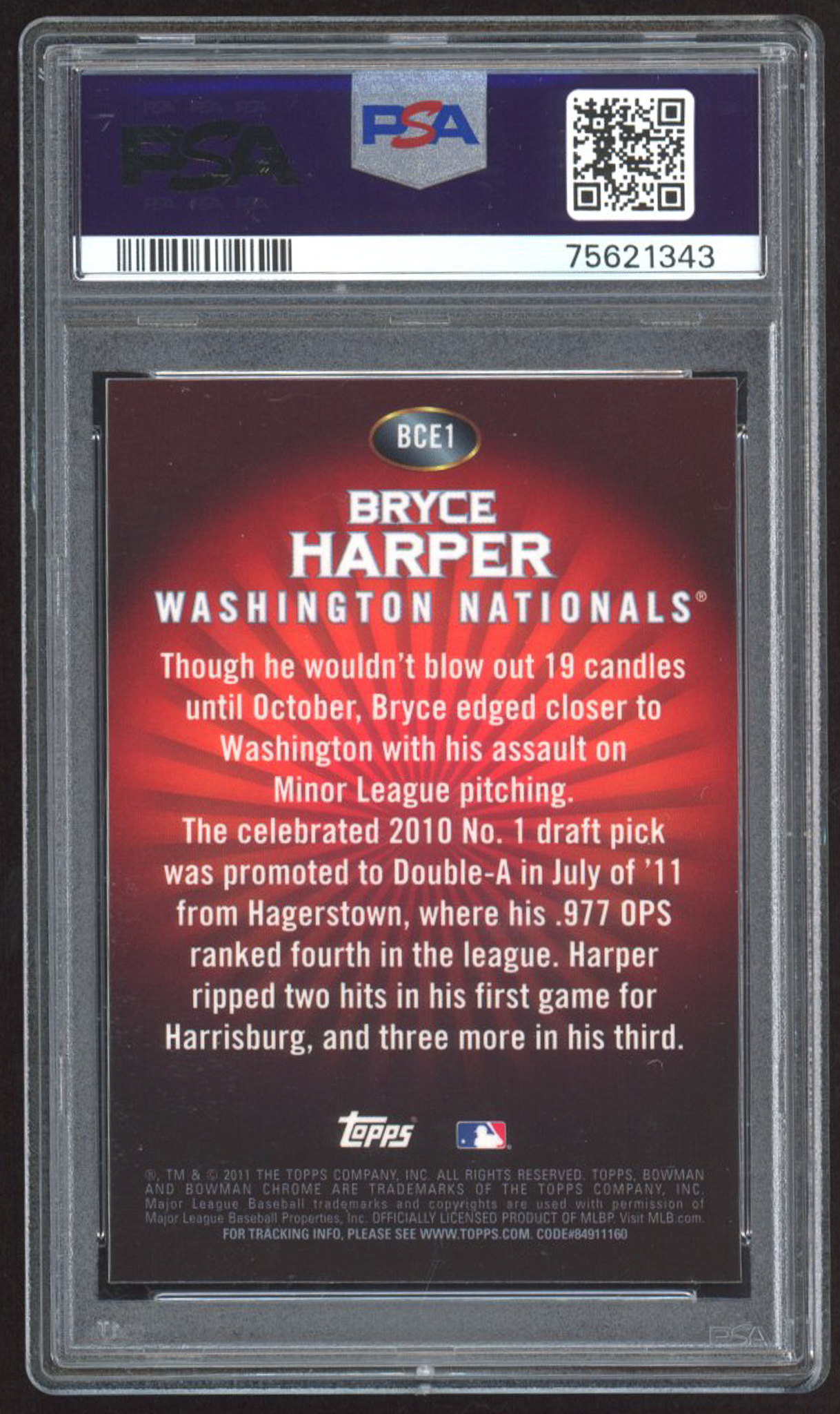 Bryce Harper 2011 Bowman Chrome Bryce Harper Retail Exclusive #BCE1R Red RC (PSA 10)