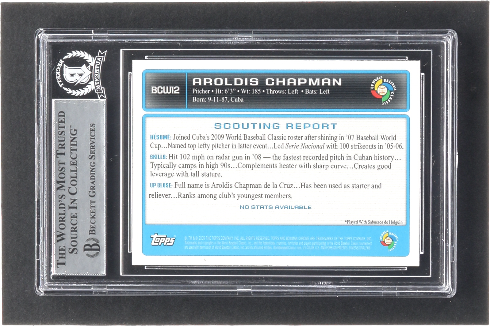 Aroldis Chapman Signed 2009 Bowman Chrome WBC Prospects #BCW12 RC (BGS)