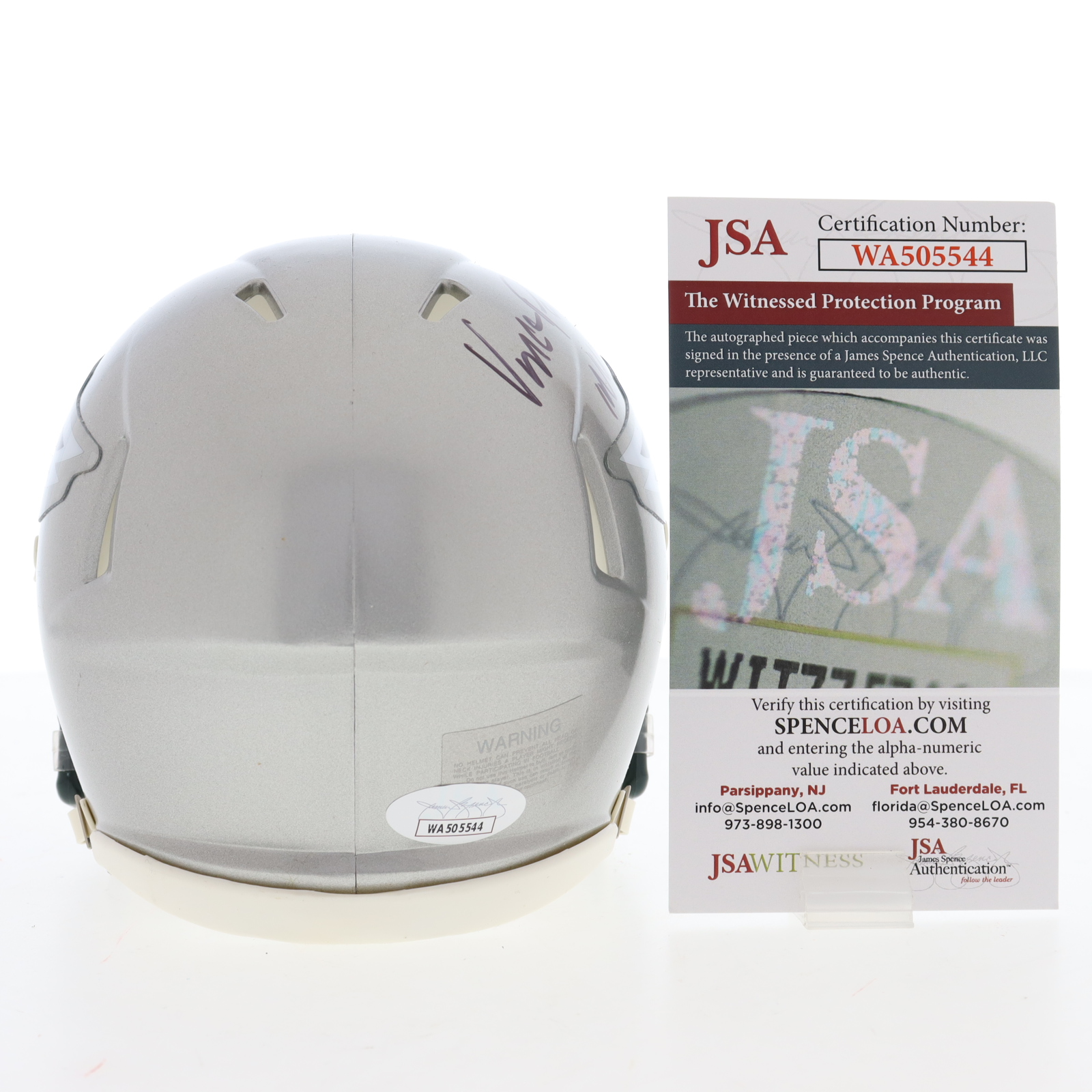 Riddell Philadelphia Eagles Flash Alternate Speed mini helmet. Hand-signed and inscribed by Vince Papale.