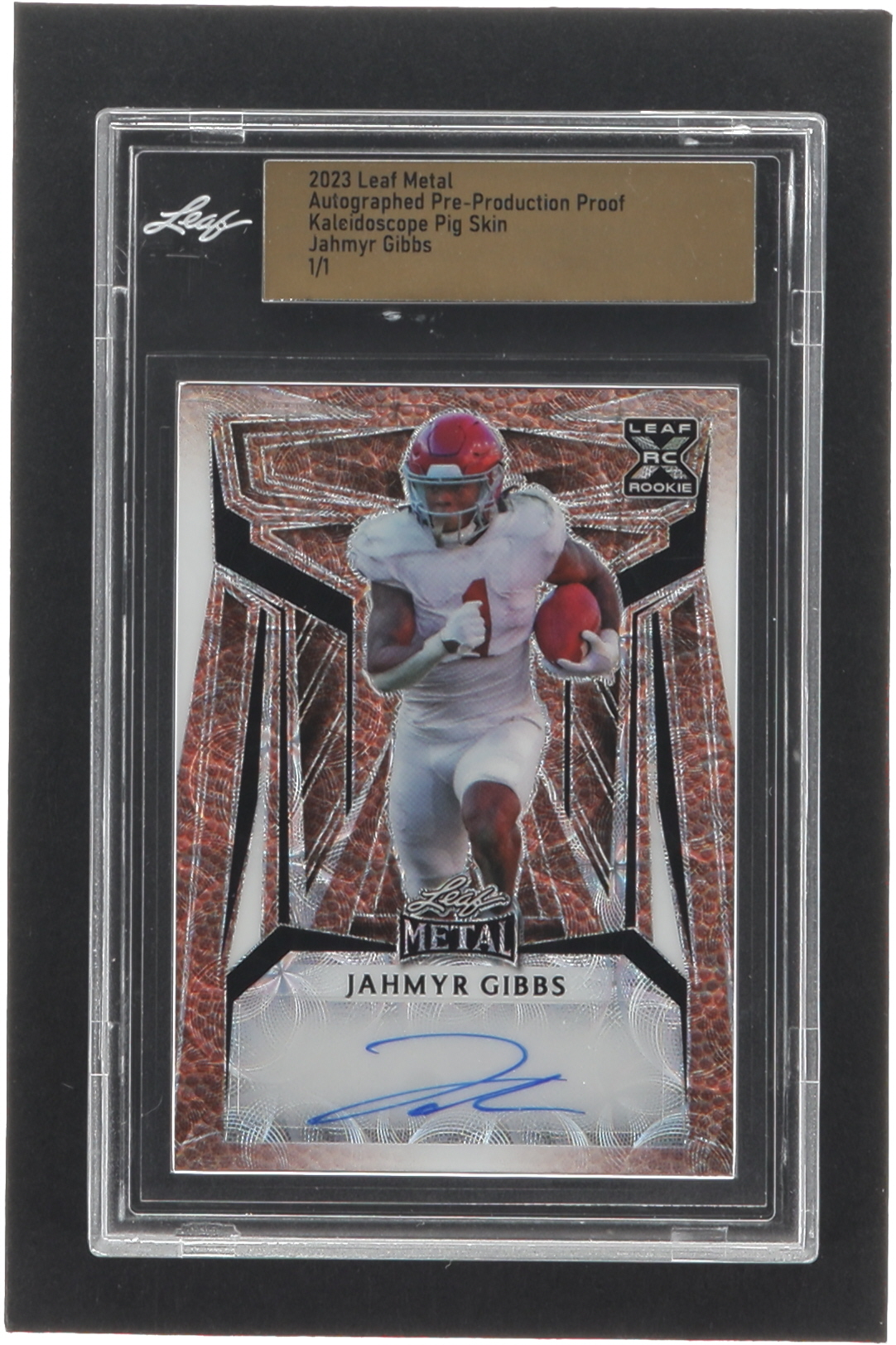 Jahmyr Gibbs 2023 Leaf Metal Kaleidoscope Pig Skin Pre-Production Proof #NNO #1/1 RC (Leaf Authentic)
