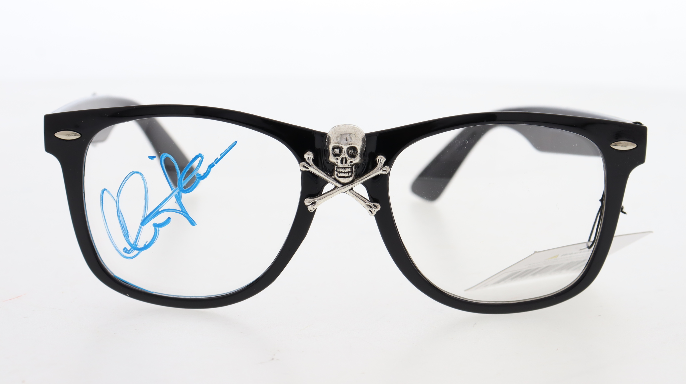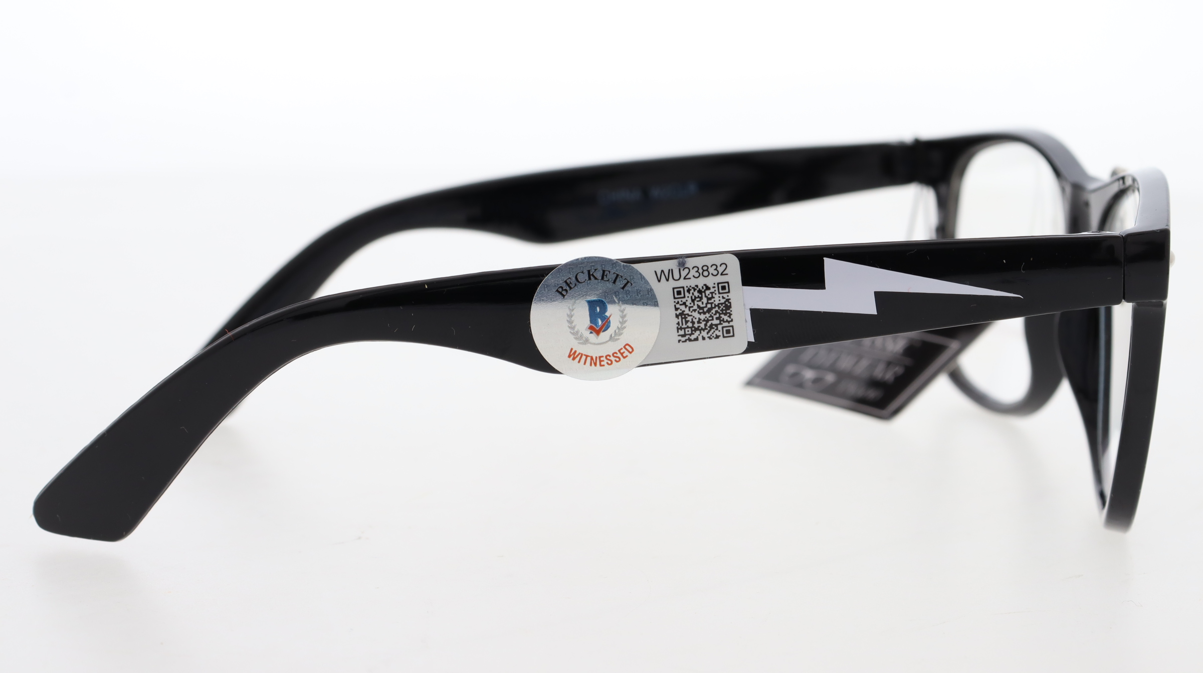 Black Frame Glasses. Hand-signed on the lens by Charlie Sheen (Ricky "Wild Thing" Vaughn).