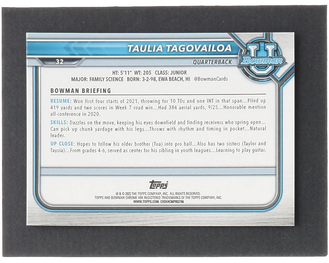 Taulia Tagovailoa 2022 Bowman University Chrome Pink Refractors #32