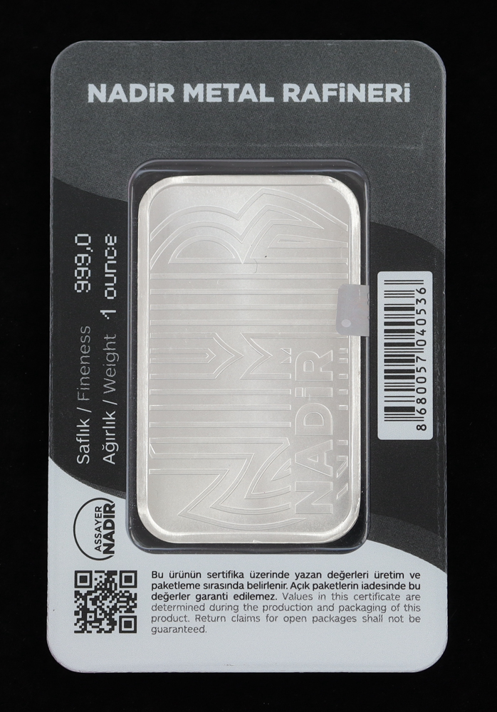 Nadir Metal Rafineri - 1oz 999.0 Fine Silver Bullion Bar in Assay
