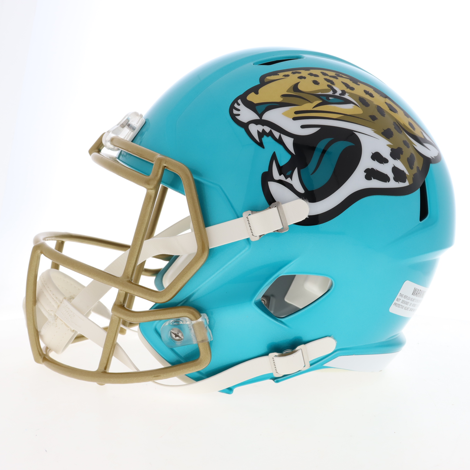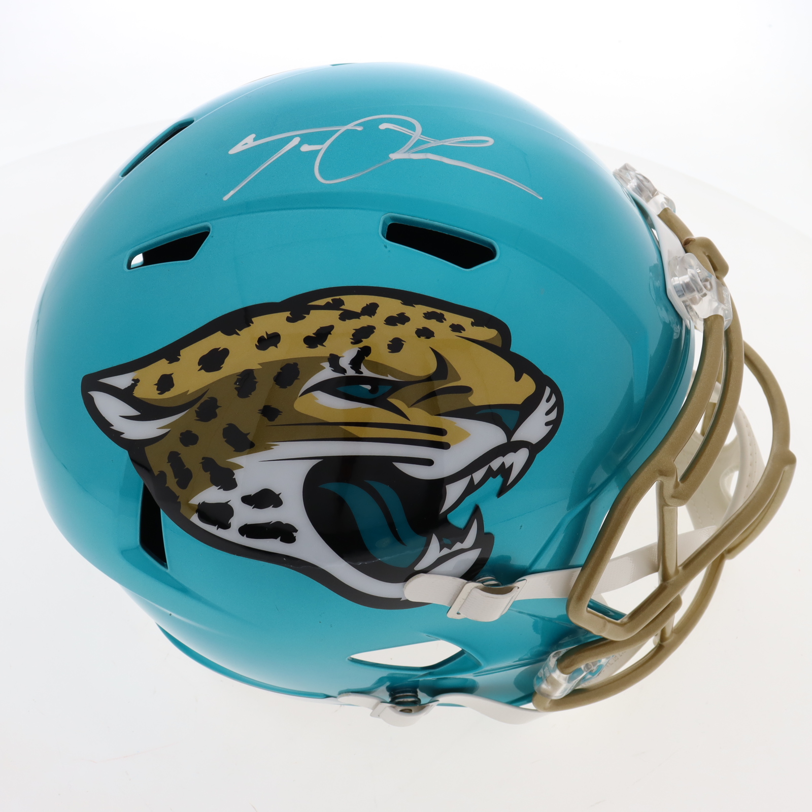 Riddell Jacksonville Jaguars full-size replica Flash Alternate Speed helmet. Hand-signed by Trevor Lawrence.