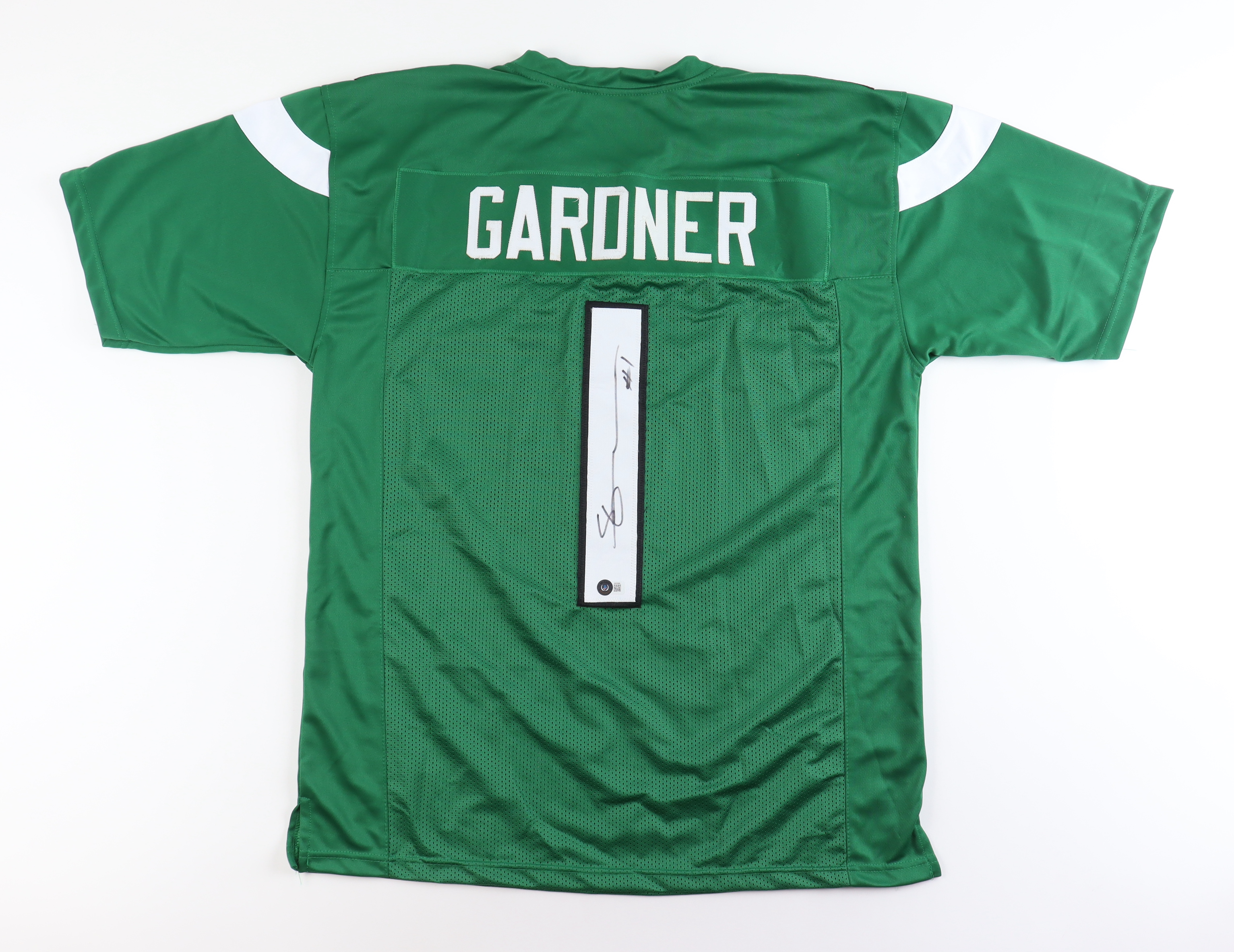 Custom jersey. Everything is sewn on, size L. Has been hand-signed by Ahmad "Sauce" Gardner.