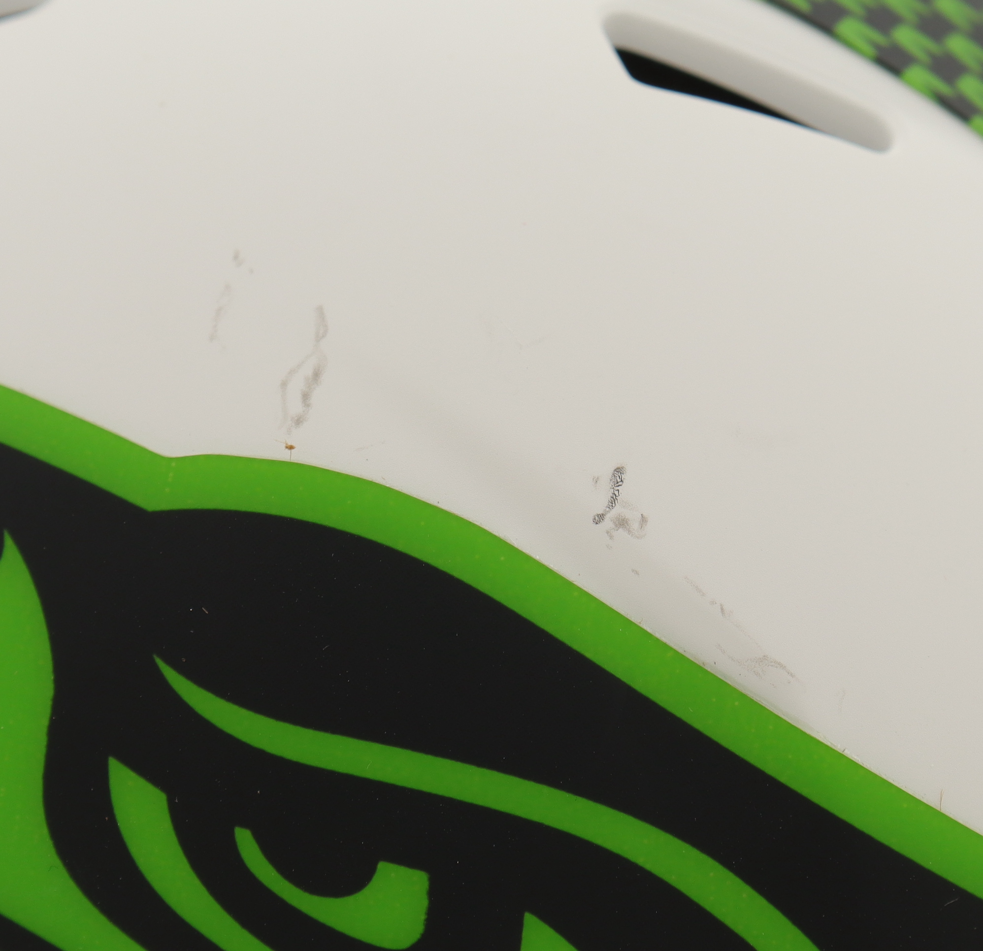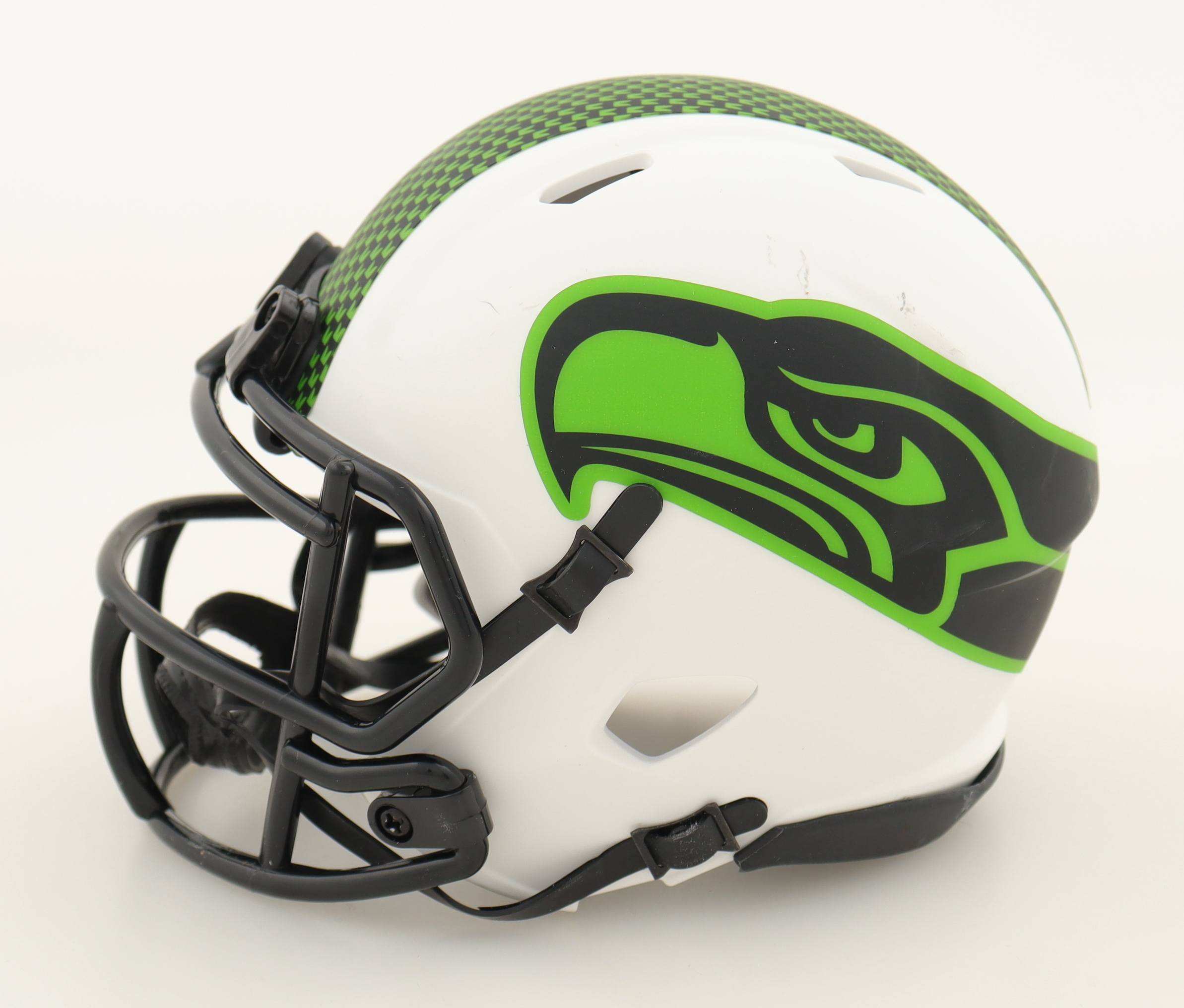 Riddell Seattle Seahawks Lunar Eclipse Alternate Speed mini helmet. Hand-signed by Geno Smith. Please note helmet has minor scuff marks.