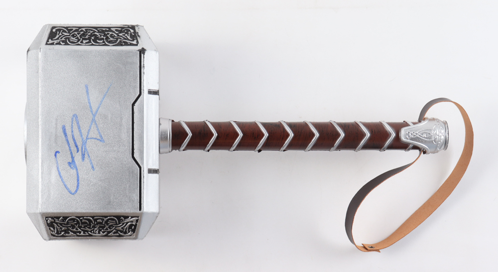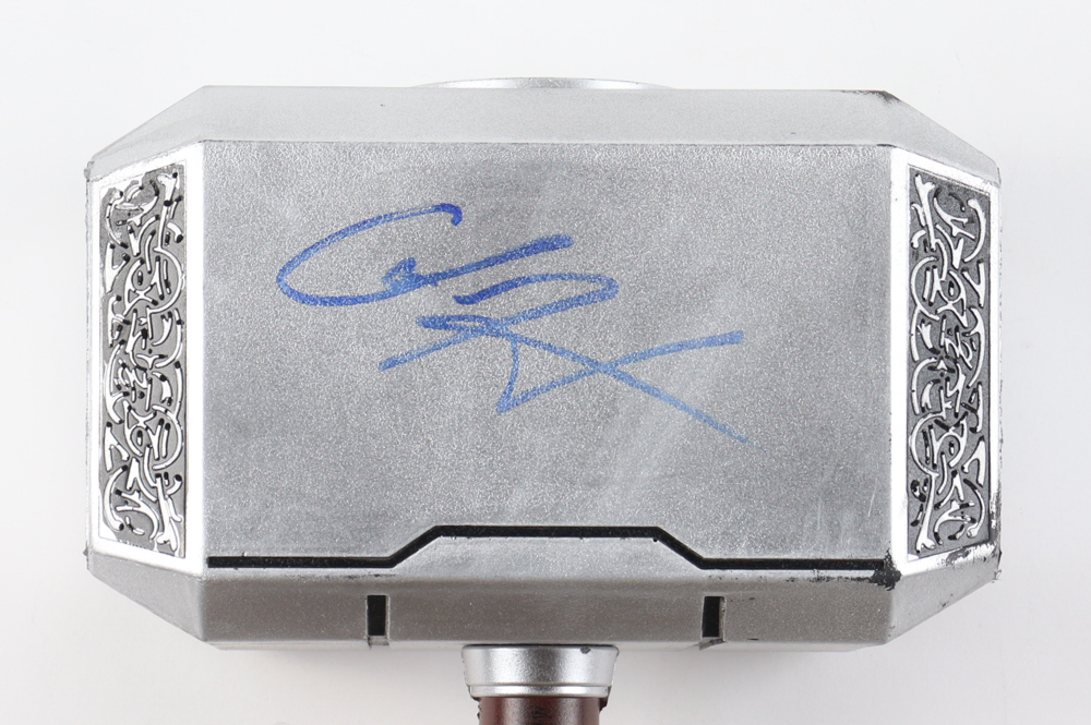 Hammer replica measures approximately 16" in length and has been hand-signed by Chris Hemsworth. Please note, there is surface damage on the replica hammer.