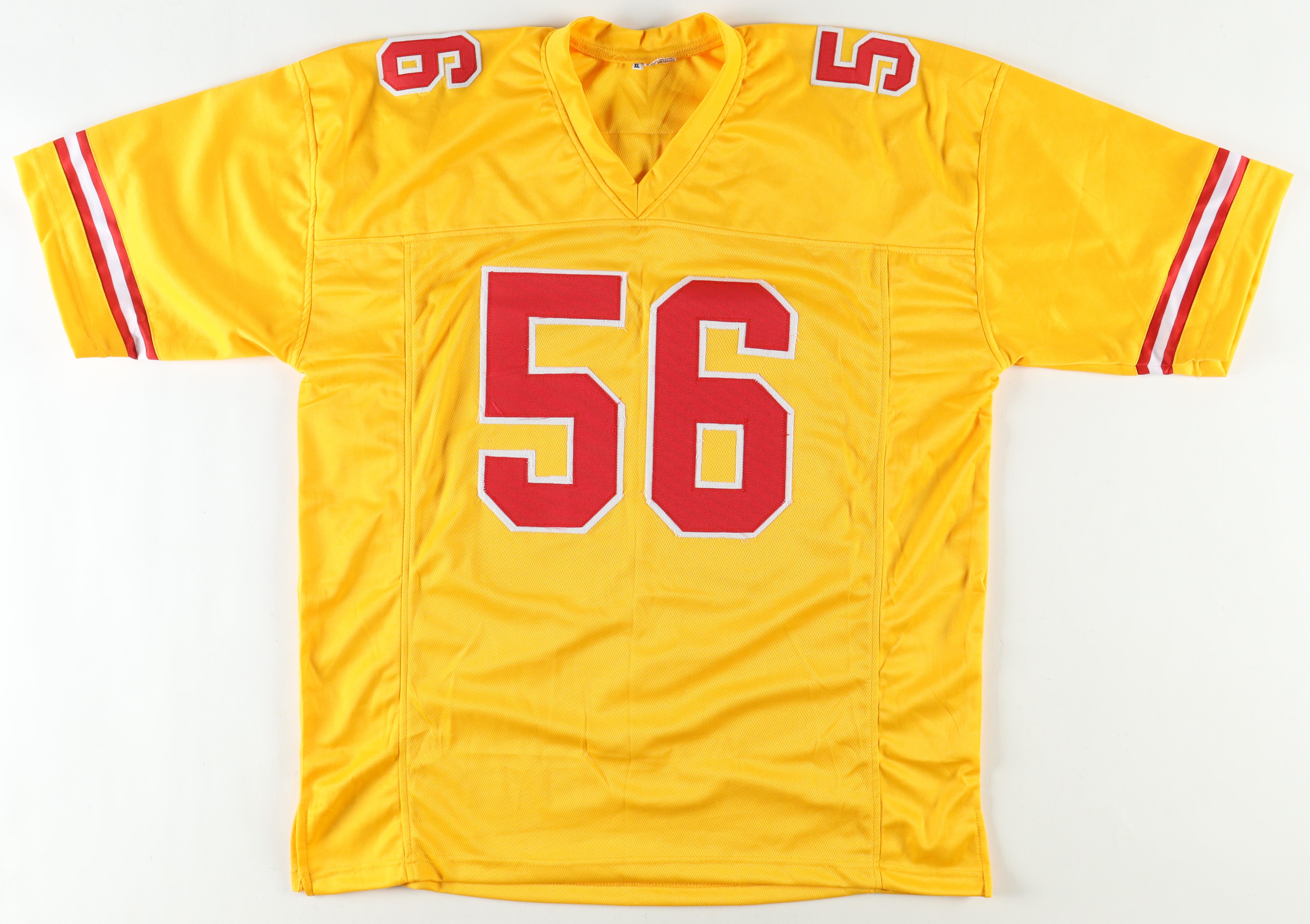 Custom jersey with everything sewn on, size XL. Hand-signed by Derrick Johnson.