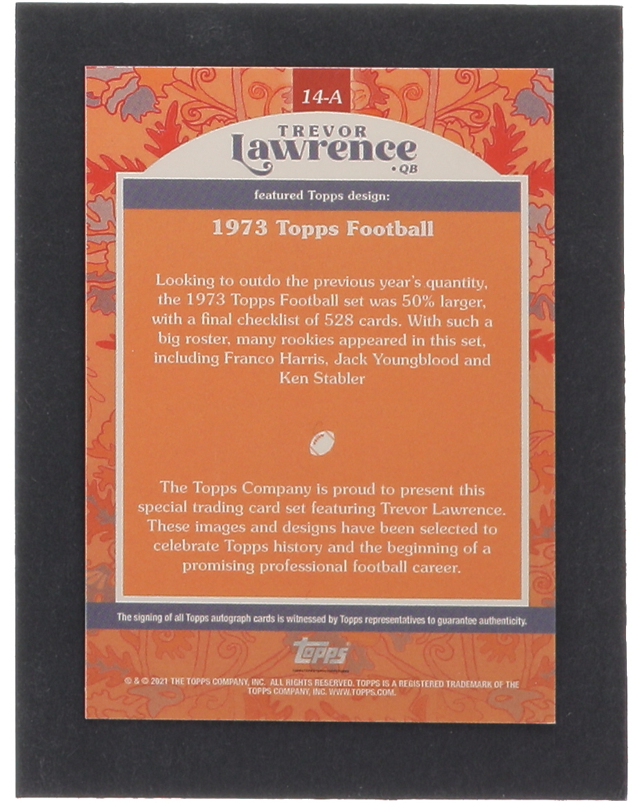 Trevor Lawrence 2021 Topps X Trevor Lawrence Autographs Orange #14 1973 Topps Football #25/99 RC